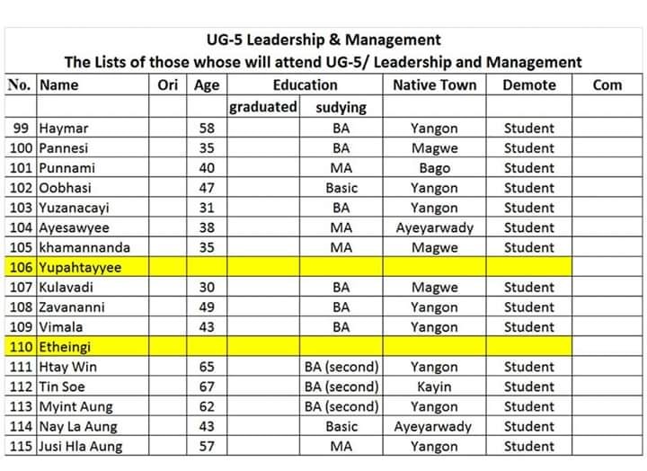 สำหรับการมาเข้าอบรมของมหาวิทยาลัยสงฆ์ย่างกุ้ง จัดขึ้นตั้งแต่วันที่ 20-26 พฤศจิกายน พ.ศ.2561 โดยมุ่งหวังที่จะนำหลักความดีสากล 5 ประการไปปฏิบัติให้เกิดขึ้นจริง เพราะเล็งเห็นว่าความสะอาด ความมีระเบียบ ความสุภาพ ความตรงต่อเวลา และการมีสมาธินั้น เป็นหลักปฏิบัติที่สำคัญที่จะปลูกฝังนิสัยที่ดีให้เกิดขึ้นแก่ตนเองละขยายสู่บุคคลรอบข้างจนเกิดสังคมที่สงบสุข ที่เต็มไปด้วยศีลธรรมอันดีเกิดขึ้นในอนาคต