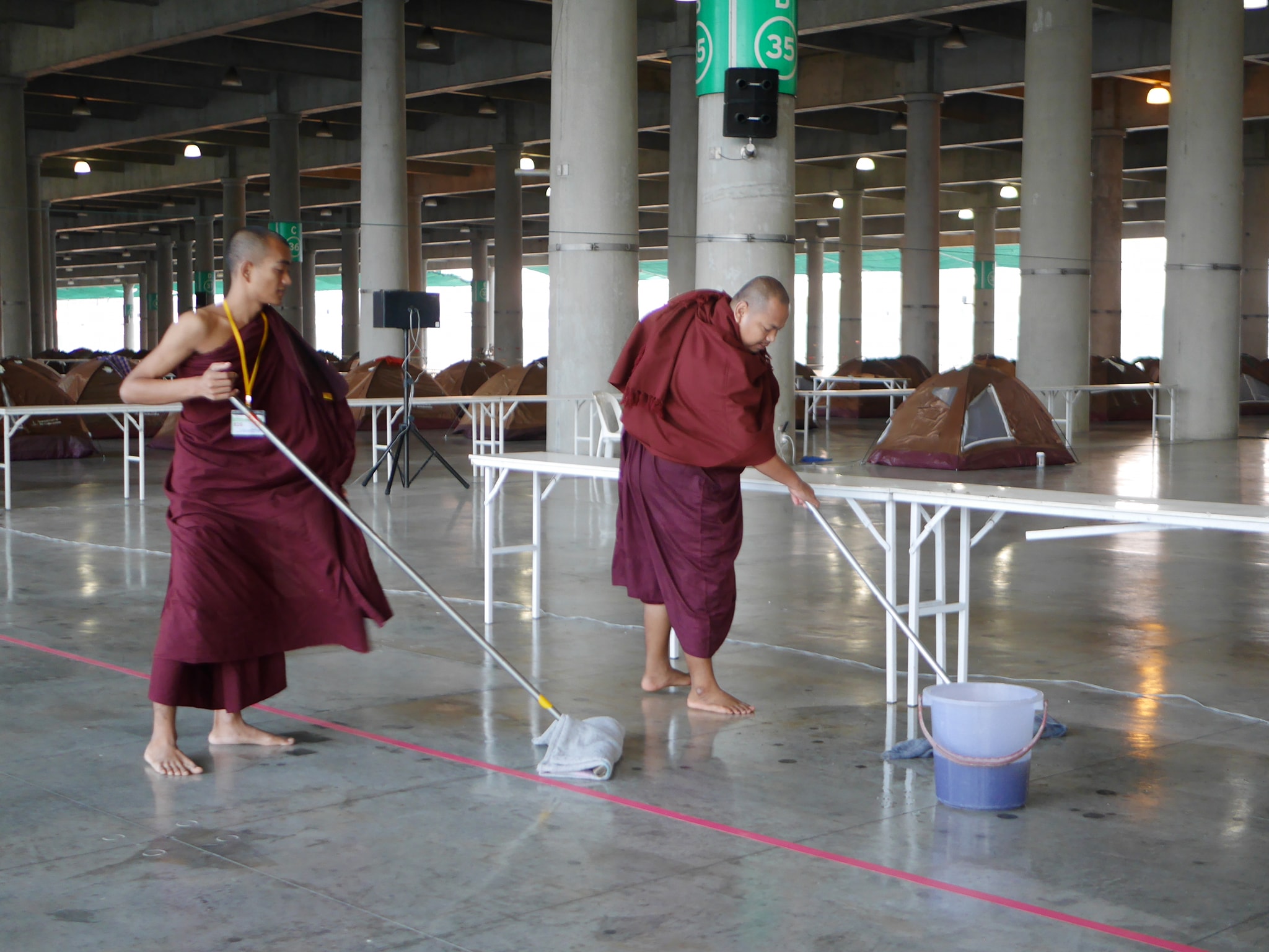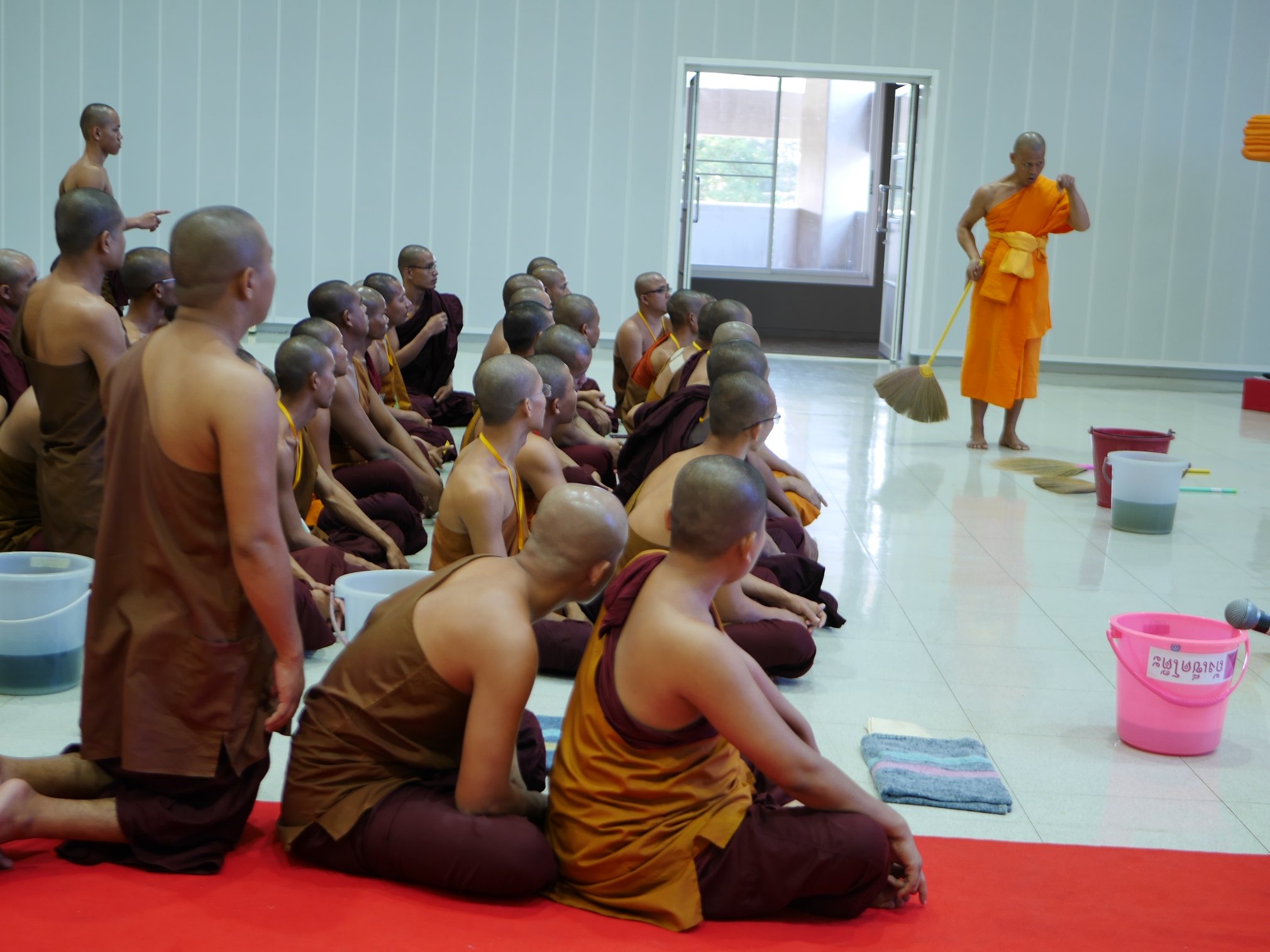 ซึ่งสิ่งเหล่านี้จะช่วยปลูกฝังนิสัยของผู้ปฏิบัติให้เกิดนิสัยที่ดี รักในการฝึกฝนตนเอง จากนั้นหลวงพ่อทัตตะชีโวได้พาคณะผู้แทนจากมหาวิทยาลัยสงฆ์ย่างกุ้ง ลงดูพื้นที่จริง คือ หมู่กุฏิสามเณร เพื่อชมความเป็นอยู่ของสามเณร และเกณฑ์การวัดผลการเลื่อนชั้น จากนั้นได้ไปดูที่ห้องน้ำ และกุฏิสามเณรประจำ ซึ่งทุกท่านที่เข้าชมต่างให้ความสนใจเป็นอย่างมาก