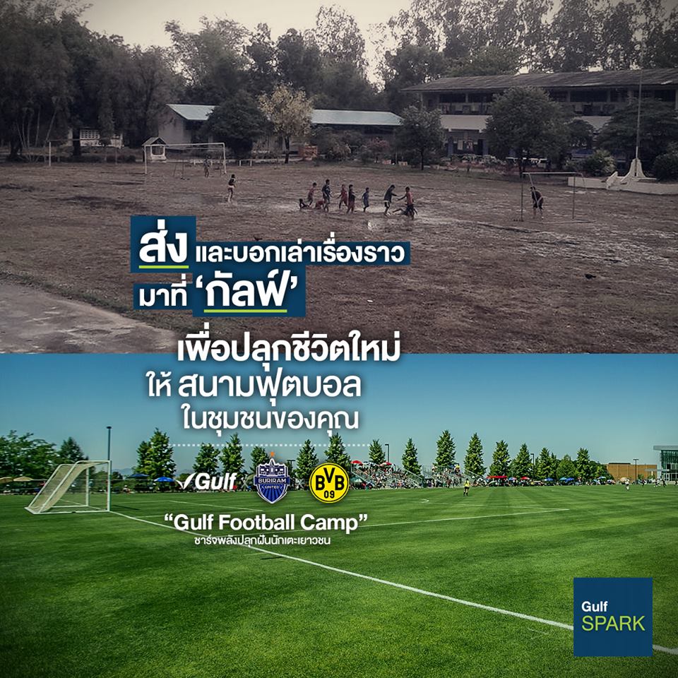 - กัลฟ์ และ สโมสรบุรีรัมย์ ยูไนเต็ด จะคัดเลือกสนามฟุตบอลหนึ่งแห่ง ที่น่าสนใจที่สุด เพื่อมาปรับปรุงให้เป็นสนามฟุตบอลที่มีคุณภาพและได้มาตรฐาน