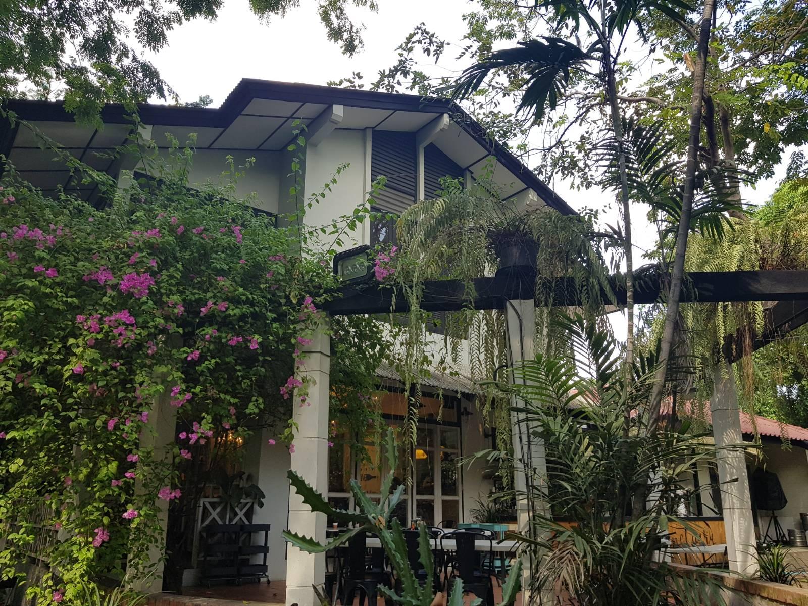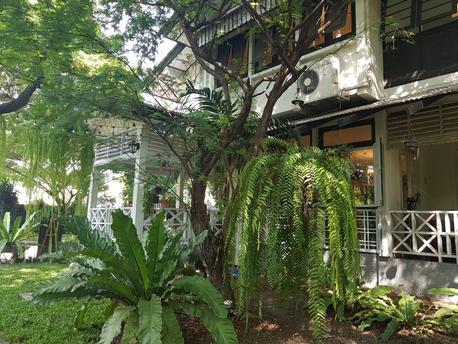 Sanctuary Cafe & Restaurant เป็นร้านอาหารที่ดัดแปลงมาจากบ้านเก่าที่มีอายุอานามร่วมๆ 100 ปี นำมาปรับปรุงใหม่ให้แข็งแรง สวยงาม และทันสมัยมากยิ่งขึ้น โดยคงคอนเซ็ปต์โดยรวมของบ้านให้เป็นแนววินเทจ ตัวบ้านทาสีขาวทั้งหลัง แต่แอบเก๋ด้วยด้วยบานหน้าต่างสีดำ ทำให้ตัวบ้านดูสวยสะดุดตาเพิ่มมากขึ้น แต่ก่อนที่เราจะเดินเข้าไปในร้าน ขอเดินชมบรรยากาศนอกร้านกันแป๊บนะครับ
