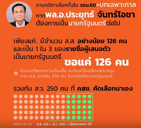 สส ทั้งหมด 500 คน ประยุทธ์ได้แค่ 126 คนก็ตั้งรัฐบาลได้แล้วเหรอ ได้เสียงแค่ 25.2% ก็ตั้งรัฐบาลได้ ผมเข้าใจถูกไหม