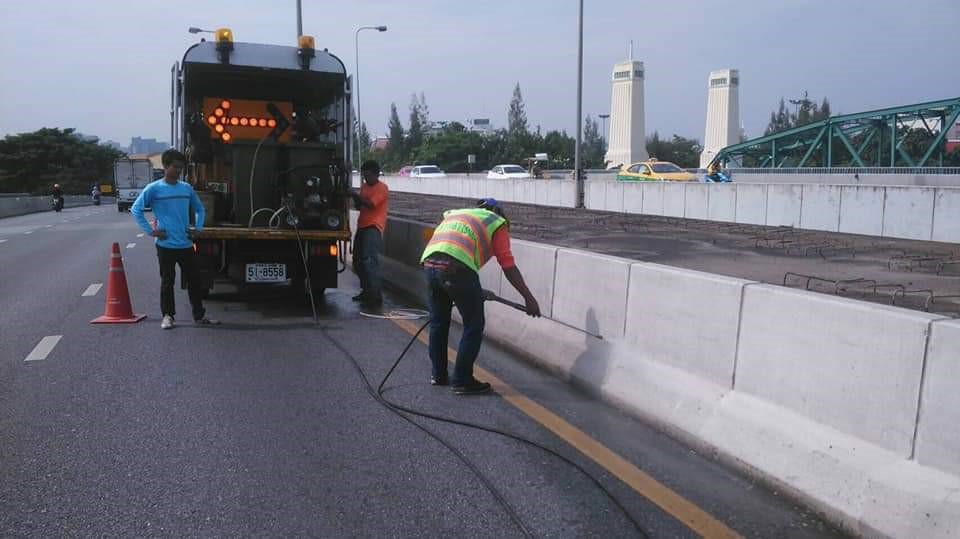 เพราะงานนี้สมเด็จพระเจ้าอยู่หัวจะเสด็จพระราชดำเนินด้วย ถนนหนทางต่างๆจึงต้องจัดเตรียมเป็นอย่างดี ... ปกติถนนในกรุงเทพนี่มันหมดสภาพแทบทุกเส้นทาง ยิ่งมีการก่อสร้างรถไฟฟ้าด้วยแล้วยิ่งเละเทะ สีเส้นจราจรในหลายๆเส้นทางเลือนหายจนไม่มีเหลือ คนใช้รถใช้ถนนก็ต้องทนวิ่งกันไปรอคอยกันไปว่าเมื่อไรถนนมันจะเรียบเสมอกัน