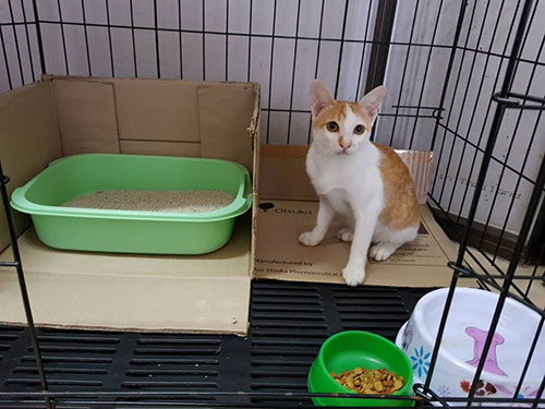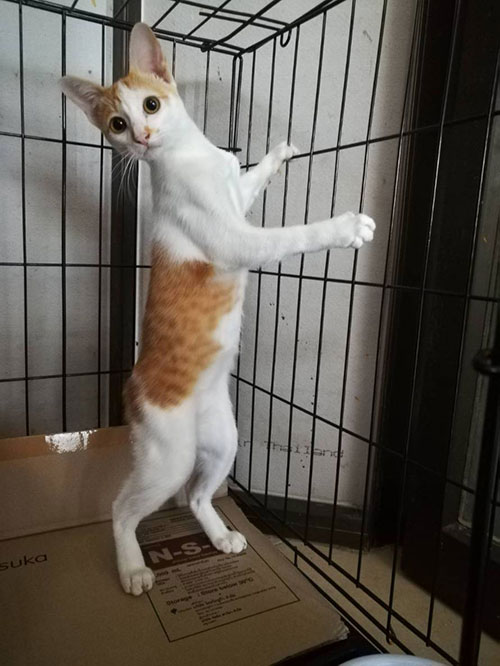 พอดีที่บ้านเลี้ยงแมวแบบระบบปิดไว้เป็นสิบตัวแล้ว และแมวจรหน้าบ้านอีกหลายตัว เลยไม่สามารถเลี้ยงเพิ่มได้ ..แต่แถวบ้านมีแมวเยอะมาก ถ้ามีลูกแมวหลงมา ผมก็จะเก็บมาดูแล แล้วประกาศแจกไป ...ตอนนี้เก็บลูกแมวสีขาวส้มตัวนี้ มาเลี้ยงไว้ได้ 3 เดือนแล้วครับ ให้กินอาหารอย่างดี ทั้งอาหารเปียก อาหารเม็ด ฉี่ถ่ายในกระบะทราย ... จะเลี้ยงไว้เองก็ไม่ไหวแล้ว แมวในบ้านเยอะเกินไป เลยคิดว่าดีที่สุด คือส่งน้องเขาให้กับคนที่อยากจะเลี้ยงและต้องเลี้ยงน้องได้อย่างดีจนหมดอายุไขของน้อง
