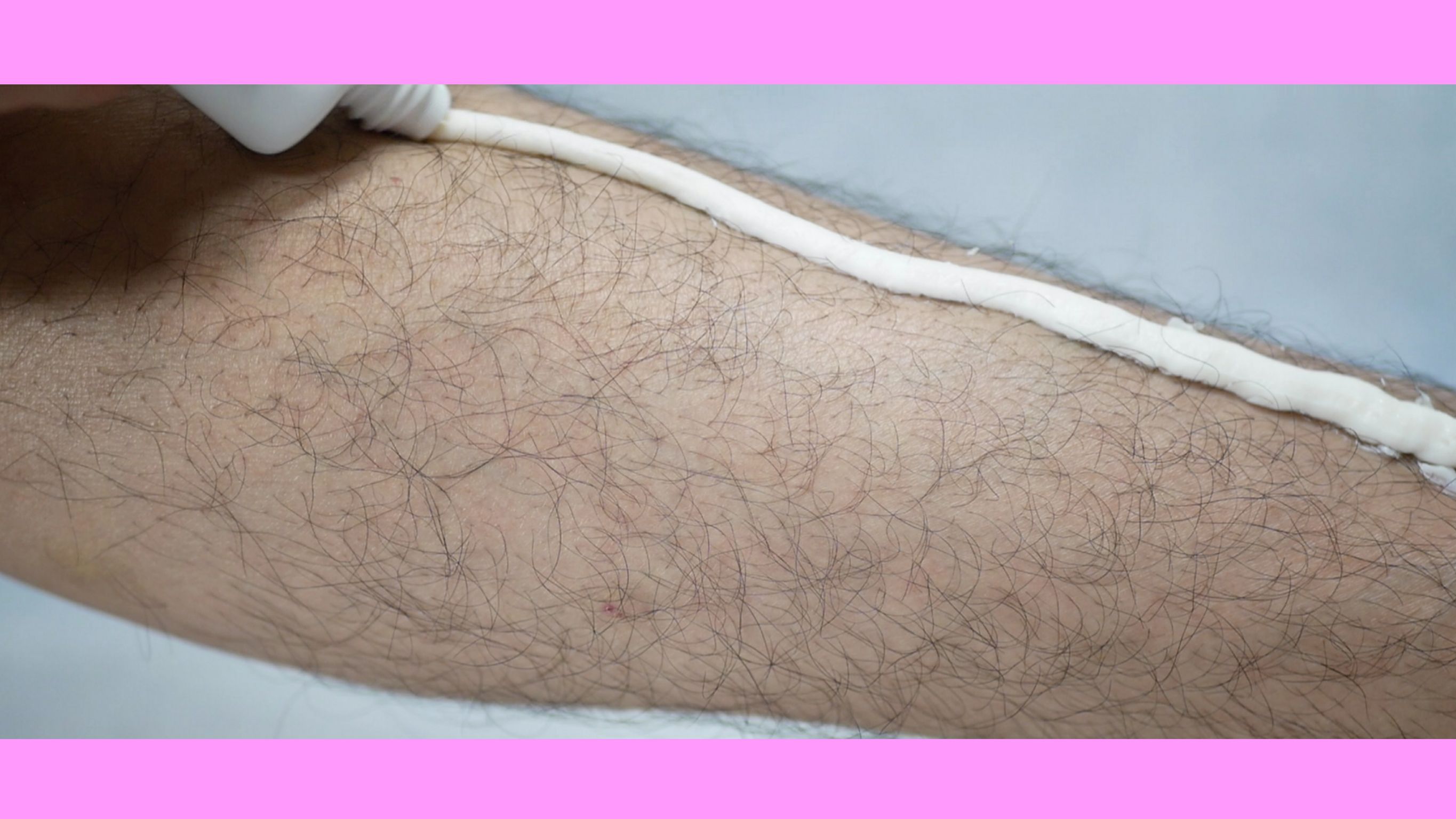 ลูบไล้ให้ทั่วพอกทิ้งไว้ 3-5 นาที ขึ้นอยู่กับความแข็งของขนแต่ละคน