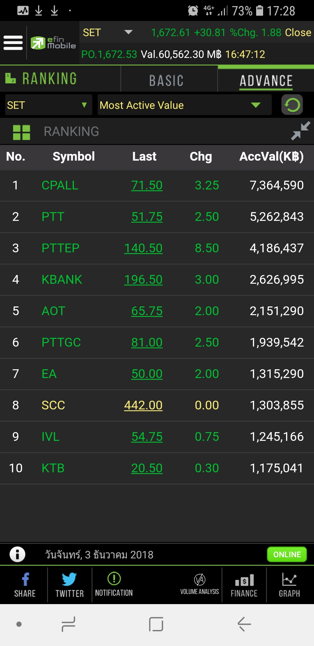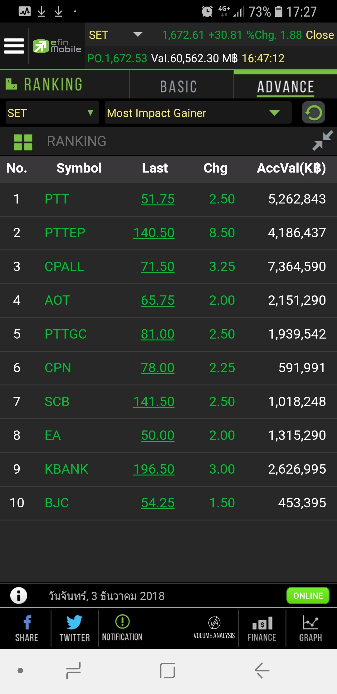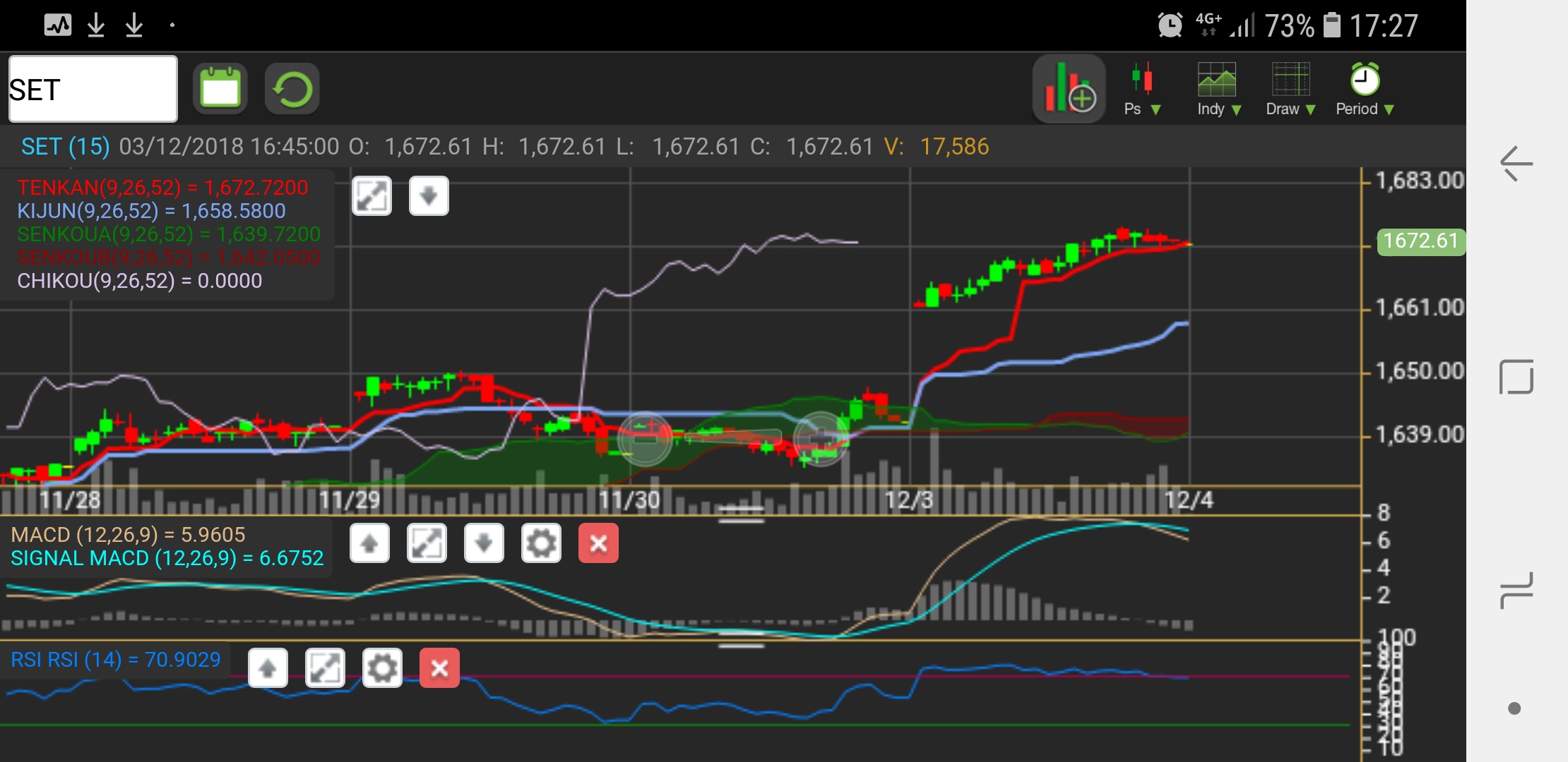 (บันทึก 03/12/61)set 1,672.6 (+30.81,+1.88%)หลังข่าวG20