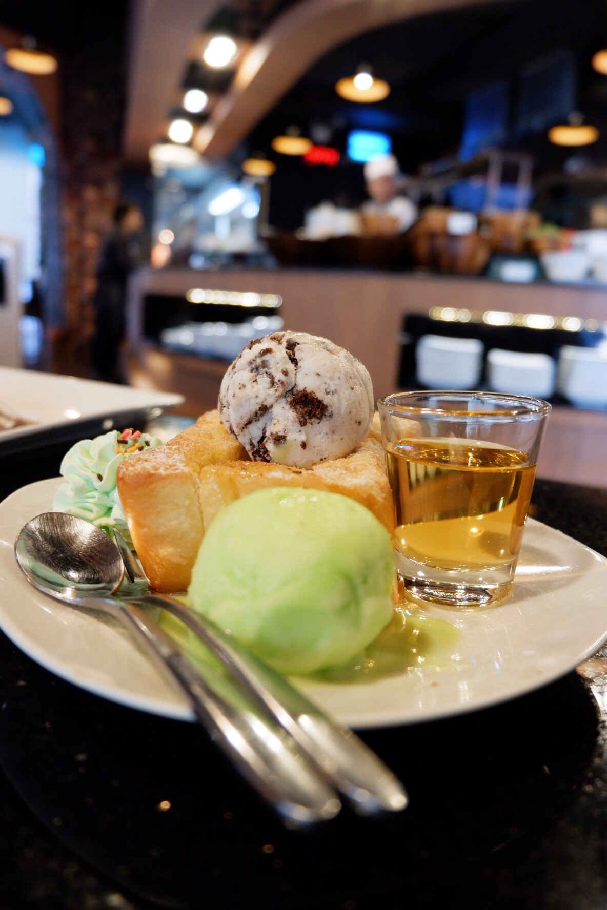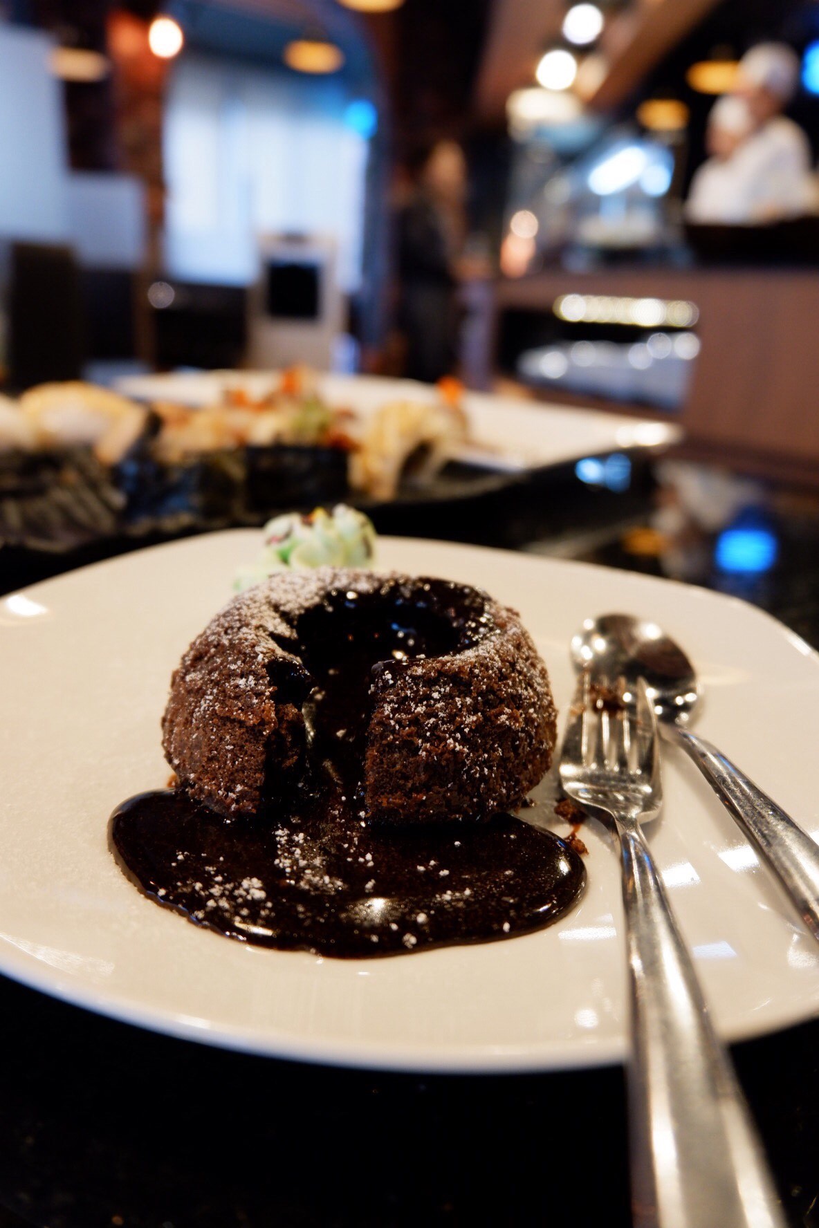เหลือท้องเผื่อของหวานด้วย พูดกันกับเพื่อนว่าต้องกิน เพราะเดินเข้ามาจริง ๆ แล้วเจอของหวานก่อนเลยน่ากินมาก ที่สั่งมามี ช็อคโกแลตลาวา กับ ฮันนีโทส สำหรับฝ้าย ฝ้ายว่าหวานไปนิดนึงสำหรับของหวาน แต่ก็ยังอร่อยอยู่