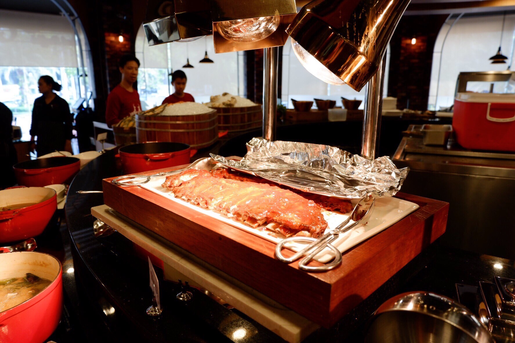 อาหารคือมีหลากหลายมากจริง ๆ นะ มีแบบหลายเชื้อชาติ นานาชาติ พรีเมียมจริง ๆ แต่อาจจะถ่ายมาได้ไม่หมด เพราะวันที่ไปลูกค้าเยอะเหมือนกัน ก็เดียวจะเกะกะคนอื่นเค้า อันที่แนะนำและส่วนตัวก็ชอบมากกกกกกกกกก ชอบจนอยากห่อกลับบ้านคือซี่โครงหมูอ่ะ มันดีมาก ไม่เหนียวเลย เนื้อนุ่มละลาย แถมซี่โครงเป็นแบบกระดูกอ่อน ๆ ให้เคี้ยว และส่วนตัวเป็นคนชอบกินอะไรแบบนี้มาก พูดได้คำเดียวว่าฟินนนน >//<