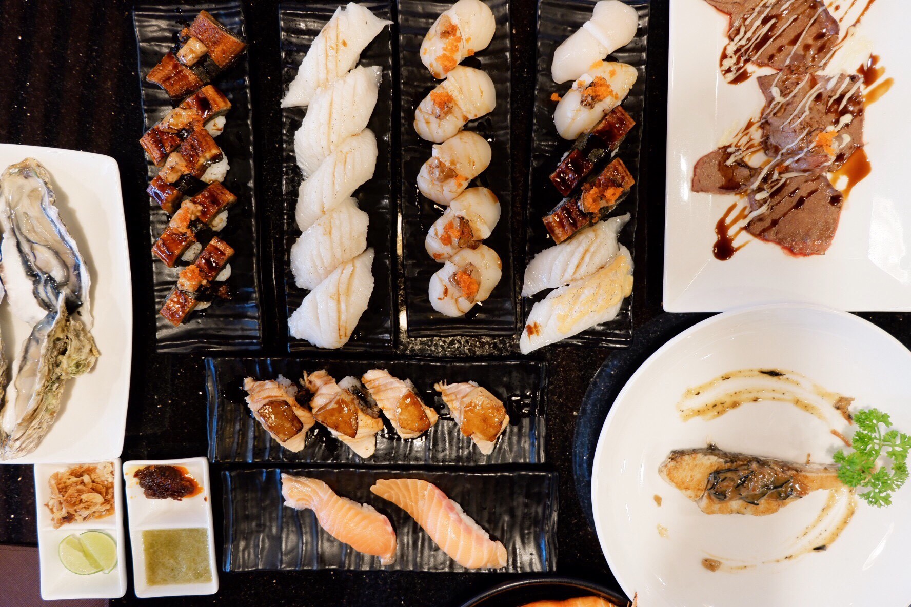 และก็อย่างที่บอกว่าที่นี่เค้านานาชาติ อาหารก็หลากหลายพรีเมียมมาก สั่งได้หมด แต่ที่ไม่ได้สั่งมาเพราะแค่ฟาดซีฟู้ดกับซูชิด้านบนก็คือเยอะมากแล้วจริง ๆ 55555555555 พวกเสต็กอ่ะไรแบบนี้ก็มีนะ เบอร์เกอร์ สปาเก็ตตี้มีหมด