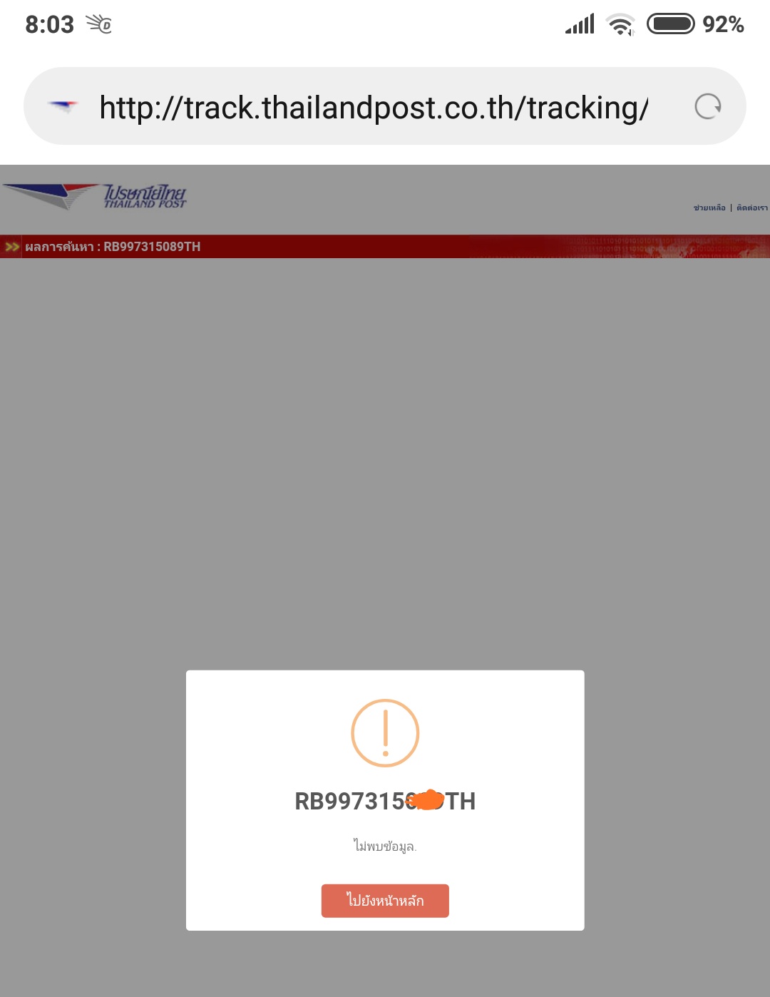 ผมสั่งของจากอินเทอร์เน็ตแล้วเขาให้รหัสพัสดุมา พอใส่แล้วมันก็เป็นแบบนี้ครับ ตอนนี้ผมต้องทำอย่างไรครับ