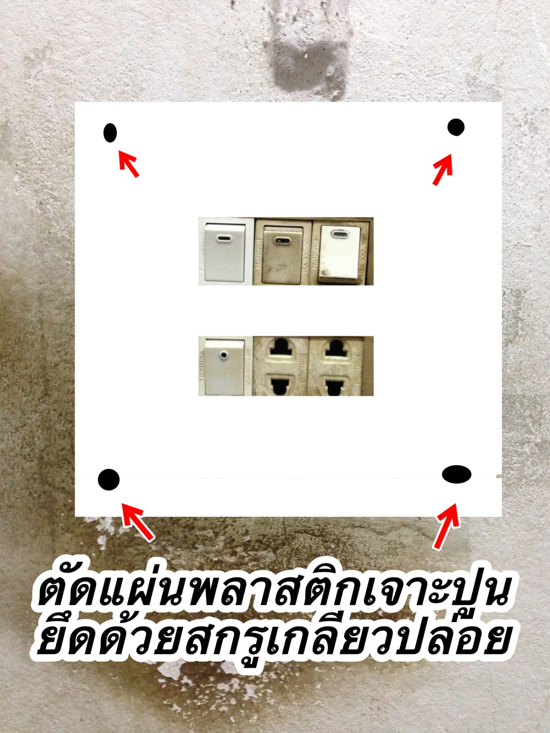 ถ้าแผงสวิชต์พลาสติก 6 ช่อง(สำหรับ 6 อุปกรณ์) ไม่มีผมหาเอาพลาติกมาเจาะช่องแล้วเจาะผนังปูนเอาสรูเกลียวปล่อยยึดแผ่นพลาสติกที่ทำเองได้ไหมครับ?