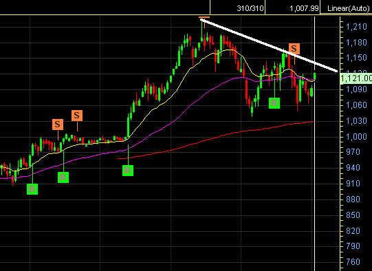 เส้นขาวๆ ที่เทลาดลง นั่นน่ะน้าาาา.... ละมันก๊ะหมายฟามถึง หุ้นขาลงไปในตัวด้วย.....