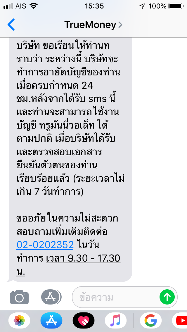 มีข้อความ sms ส่งมาจาก TrueMoney ว่าให้เรายืนยันตัวตน โดยต้องส่งอีเมล์เอกสาร 1.ภาพบัตรประชาชนตัวจริงพร้อมเซ็นชื่อ รับรองสำเนา 2.หลักฐานด้านอาชีพ หรือหลักฐานแสดงแหล่งที่มาของรายได้ จะใช้โอนเงินสดแล้วว
