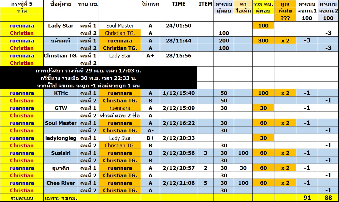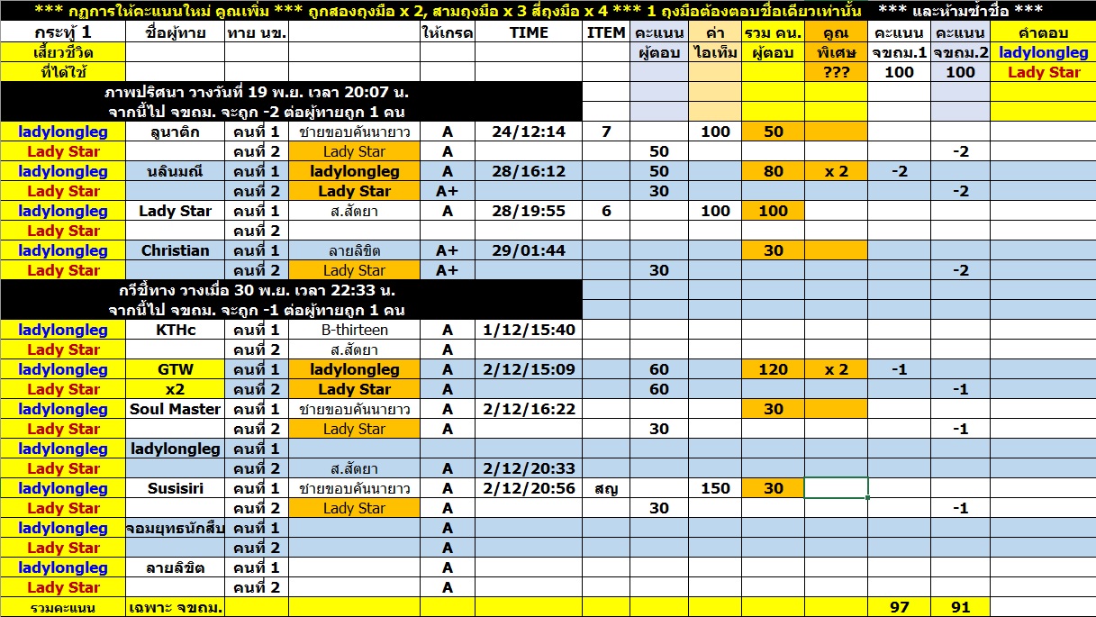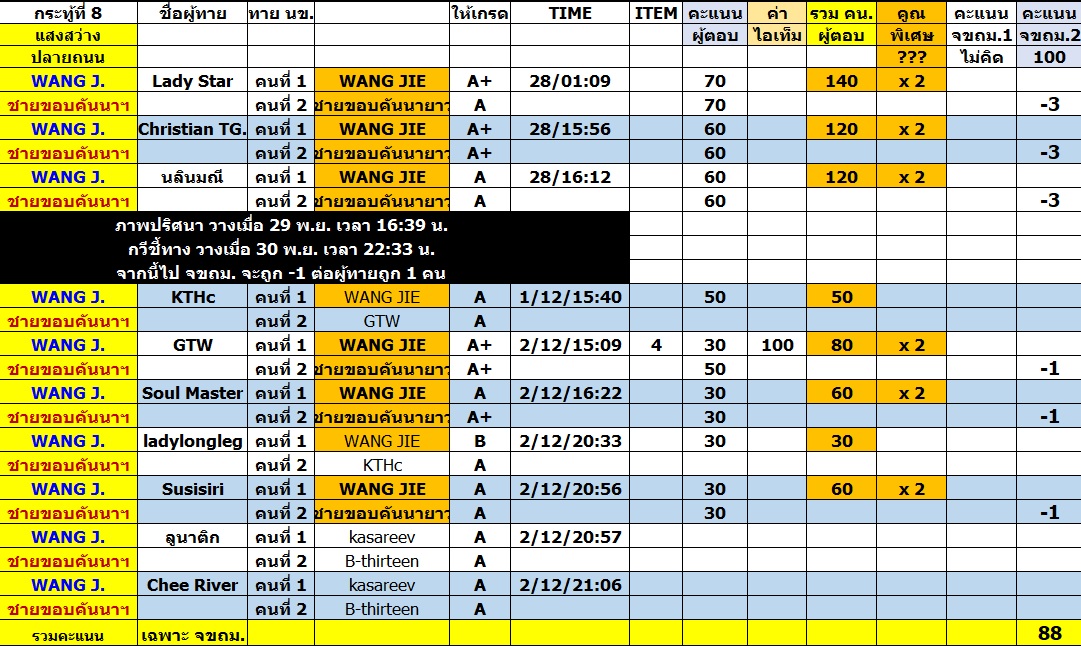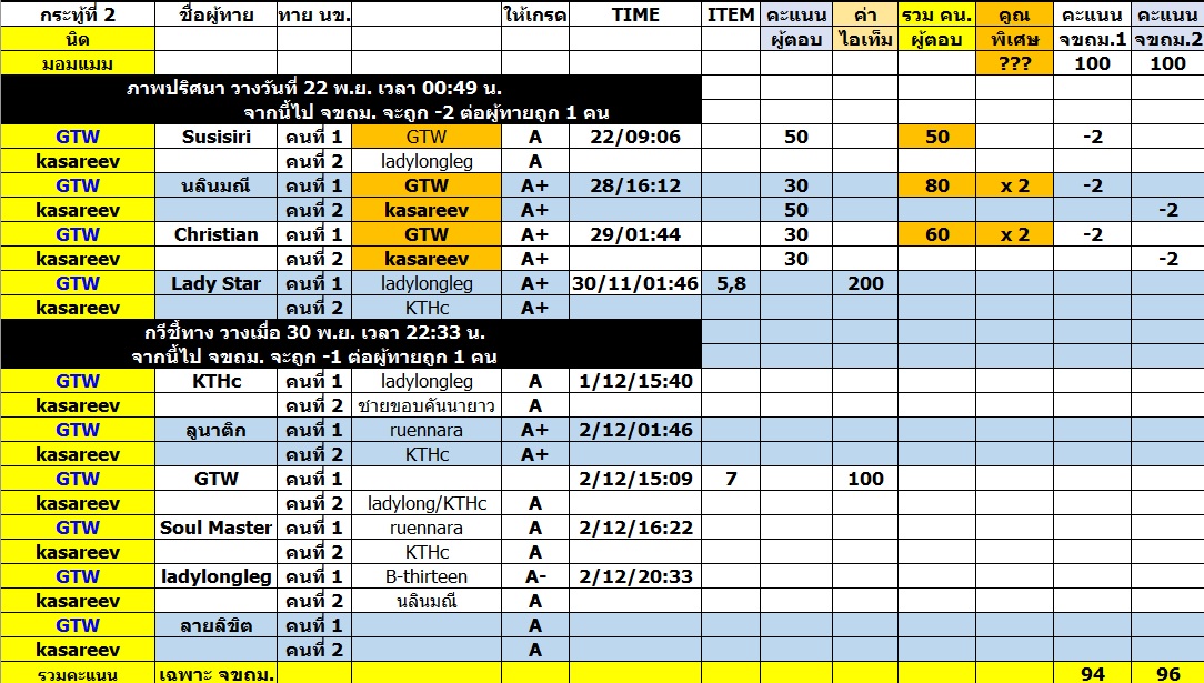 NOTE : สำหรับส่วนของผู้ตอบ ทั้ง "ค่าไอเท็ม" และการ "คูณสอง" จะแสดงให้เห็นในกระทู้รวมคะแนนผู้ตอบในภายหลัง (ยังไม่เสร็จครับ)