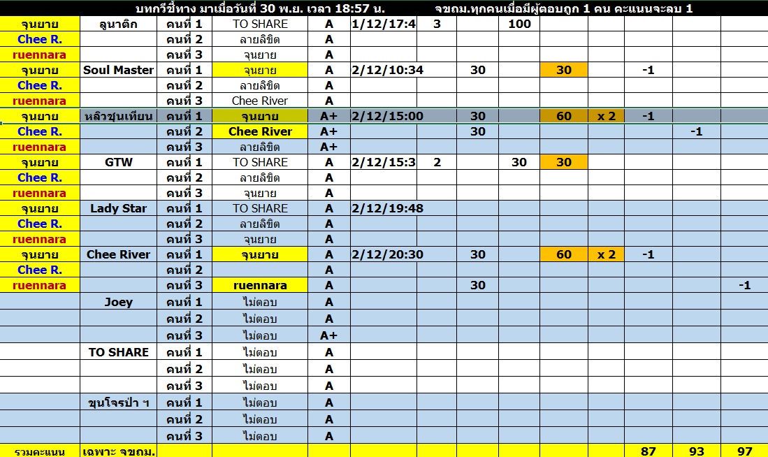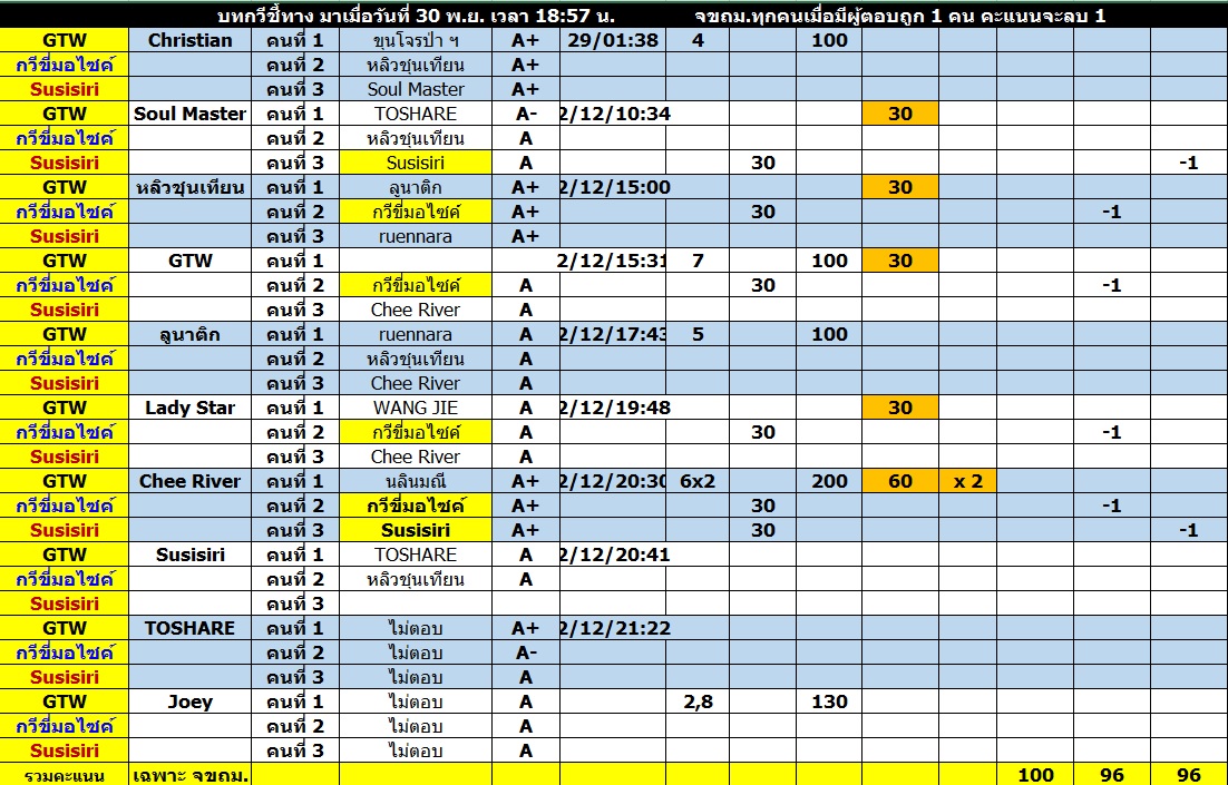 *** ยกเลิก คะแนนจากการ "ตอบสับที่กัน" ไม่ให้แล้วครับผม ***