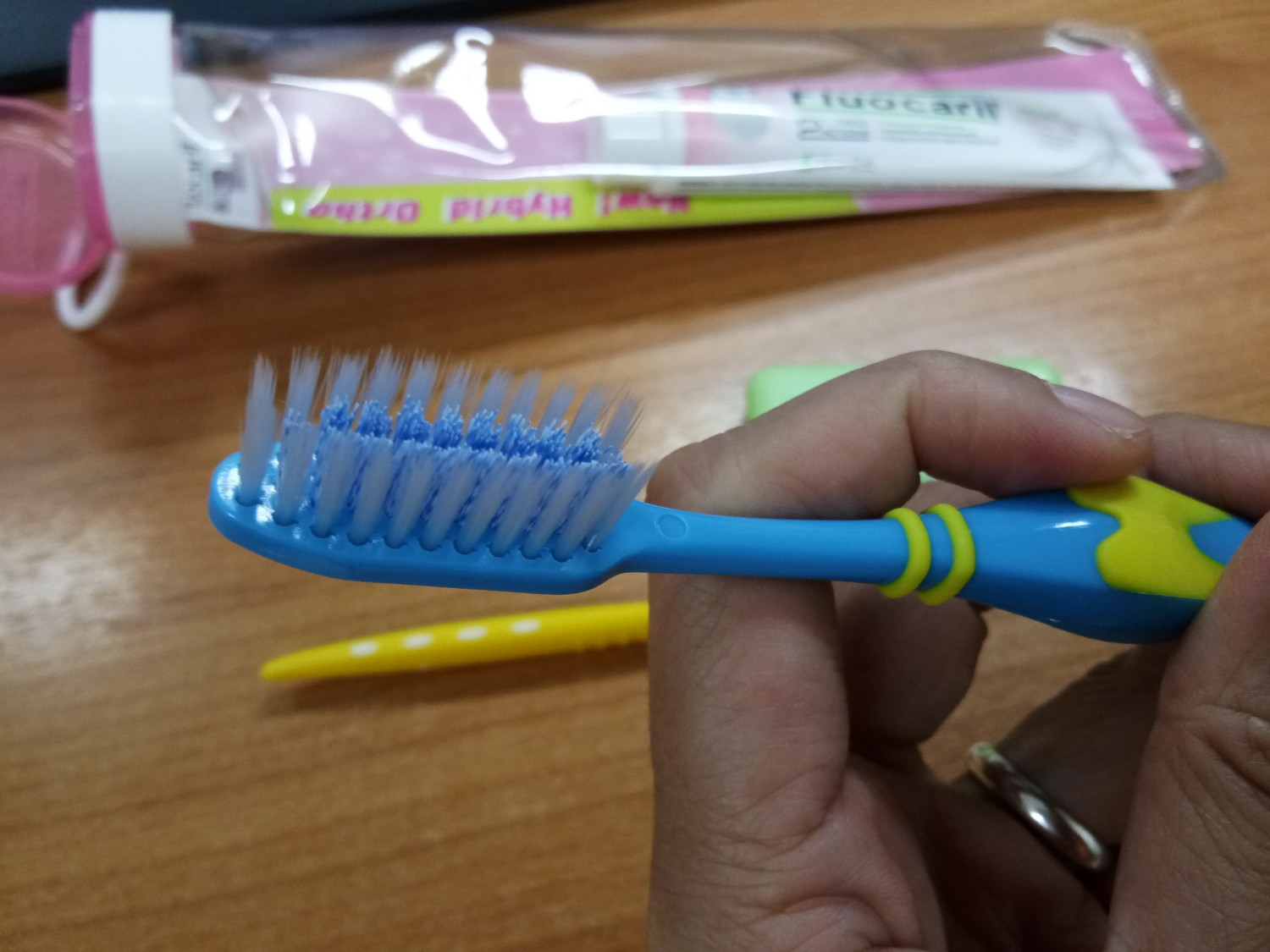 ตึงมากๆแต่ไม่ปวด แต่ก็ไม่กล้ากินอะไรอยู่ดี สรุปก็ไม่ได้กินมื้อเย็นอีกแล้วจ้า (หวังจะผอมก็คราวนี้แหละ) ครั้งนี้เสียเงิน 5,000 บาท ค่ะ เป็นการเสียเงินก้อนแรก ในยอด 35,000 บาท (ยอดนี้คือราคาที่หมอคิดสำหรับการจัดฟันครั้งนี้ค่ะ..ซี่งราคานี้รวมรีเทนเนอร์ให้แล้วด้วยนะ) พอช่วงรับใบนัดครั้งต่อไป คุณก็มีอุปกรณ์สำหรับการดูแลฟันแจกให้ด้วยนะ เฮ้ย ดีเว่อร์ เรากำลังคิดว่าจะไปหาซื้อของพวกนี้อยู่พอดีเลย คือทางคลินิกบริการได้ดีมากๆๆๆๆๆอ่ะ ปลื้มมากค่ะ โดยอุปกรณ์ที่ว่า มีดังนี้