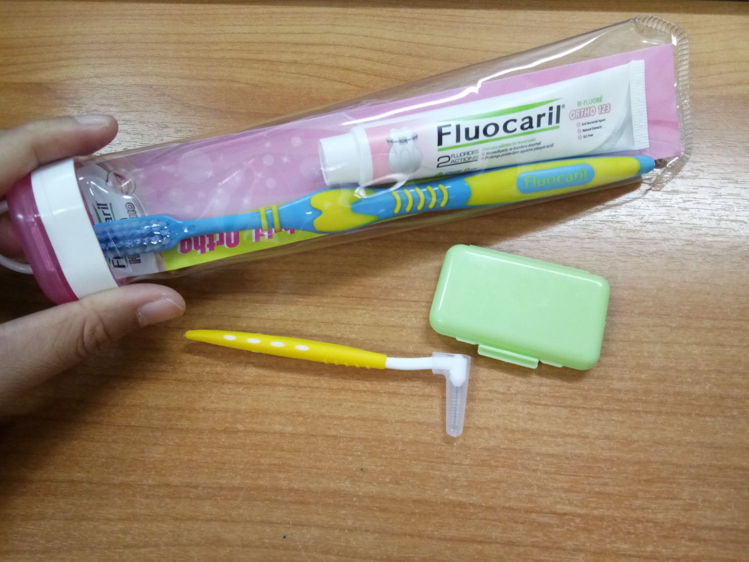 เป็นชุดแปรงทำความสะอาด (ก็สามารถหาซื้อได้ตามท้องตลาดทั่วไปนะคะ..แต่ขึ้นชื่อว่าของฟรี ก็ต้องดีใจเป็นพิเศษนิดนึงเนาะ) สิ่งที่มีให้ คือ 1.แปรงเฉพาะสำหรับคนจัดฟัน 2.ยาสีฟันหลอดเล็ก 3.แปรงขนเล็กสำหรับทำความสะอาดเหล็กจัดฟัน และ 4.ขี้ผึ้ง สำหรับติดเพื่อลบคมเหล็กจัดฟัน (วิธีใช้ก็นำมาปั้นๆเป็นก้อนเล็กๆติดไว้บริเวณเหล็กที่คม เพราะจะมีการเสียดสี ทำให้เกิดเเผลในปากได้ ทั้งนี้ไม่ต้องกลัวอันตรายนะคะ ขี้ผึ้งปลอดภัย สามารถทานได้จ้า) สำหรับกระทู้นี้ก็จบการบรรยายเท่านี้เนาะ ครั้งหน้าจะสร้างสตอรี่ใหม่แหละนะ จะขออัพเดตแบบรายเดือนนะคะ จะนำภาพมาโชว์แบบรัวๆเลยจ้า ติดเหล็กแล้วก็จะเห่อๆหน่อย อาจจะถ่ายรูปเยอะขึ้น