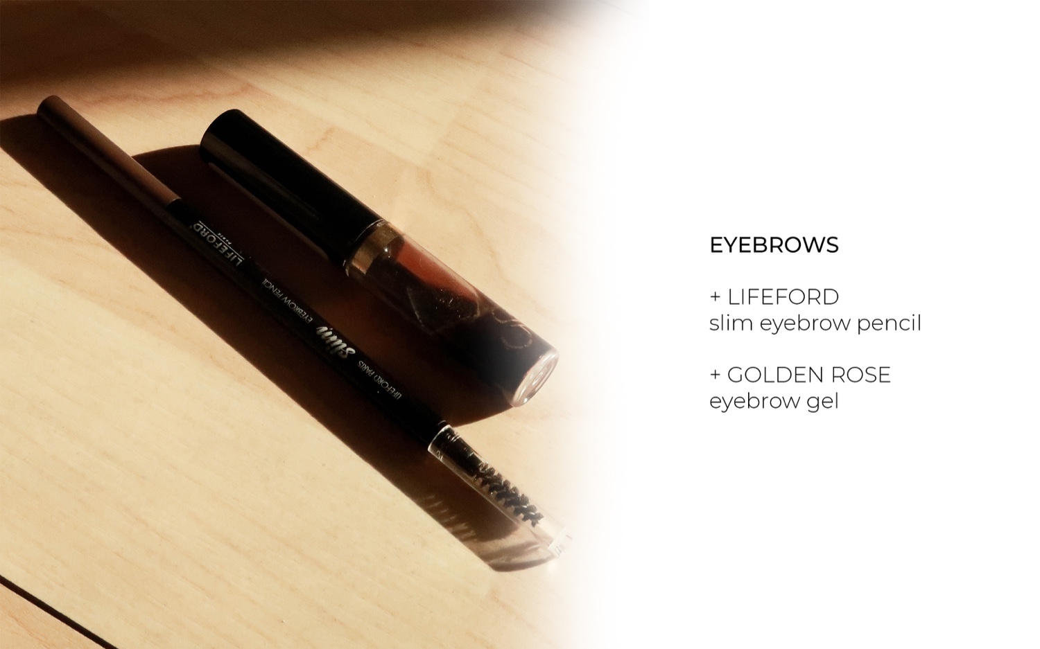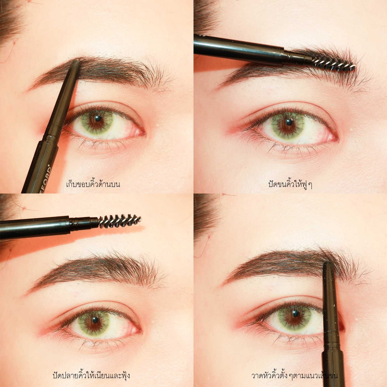 สำหรับผลิตภัณฑ์ในส่วนของคิ้วตี๋เลือกตรวจโปรดมา 2 ตัว เริ่มต้นที่โครงคิ้ว ตี๋จะใช้ Lifeford slim eyebrow pencil ในการเขียนคิ้ว