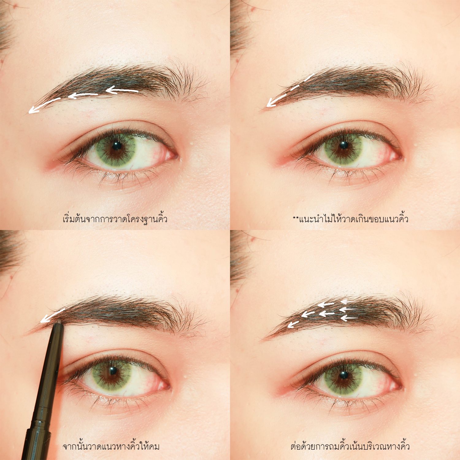 ตี๋จะเขียนตามโครงคิ้ว เพื่อความเป็นธรรมชาติ วาดตามแนวเส้นขน แนะนำสำหรับเพื่อนๆที่ฝึกหัด อยากให้เขียนตามคิ้วตัวเอง เขียนตามรูปทรงของตัวเอง จะดูสวยและเป็นธรรมชาติ (แต่ถ้าอยากคิ้วเป็นทรงสวย แนะนำให้กันคิ้วก่อนเขียน หรือแว็กซ์คิ้วก็จะทำให้ดูเป็นระเบียบมากขึ้น)