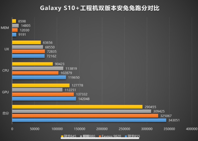 อันดับ 4 ได้แก่ Exynos 9820 จาก Samsung [CPU: 102,879 คะแนน; รวม 325,076 คะแนน]