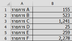 เช่น ตำแหน่ง B6 ค่า 2,278 จะถูกจัดเรียงขึ้นไปอยู่ตำแหน่ง B1 และรายการ F ที่อยู่ตำแหน่ง A6 ก็ขยับเลื่อนขึ้นไปอยู่แถวเดียวกันกับ 2,278