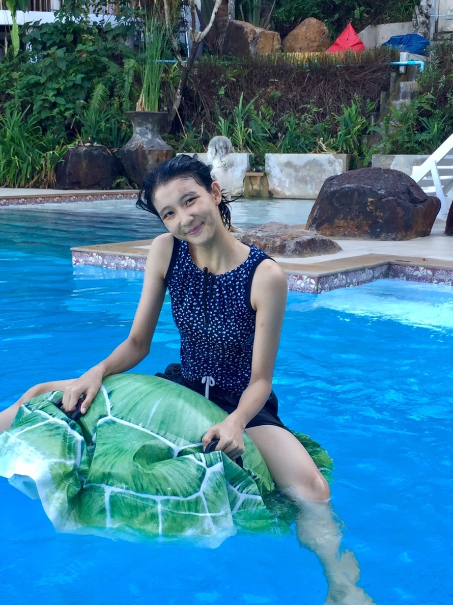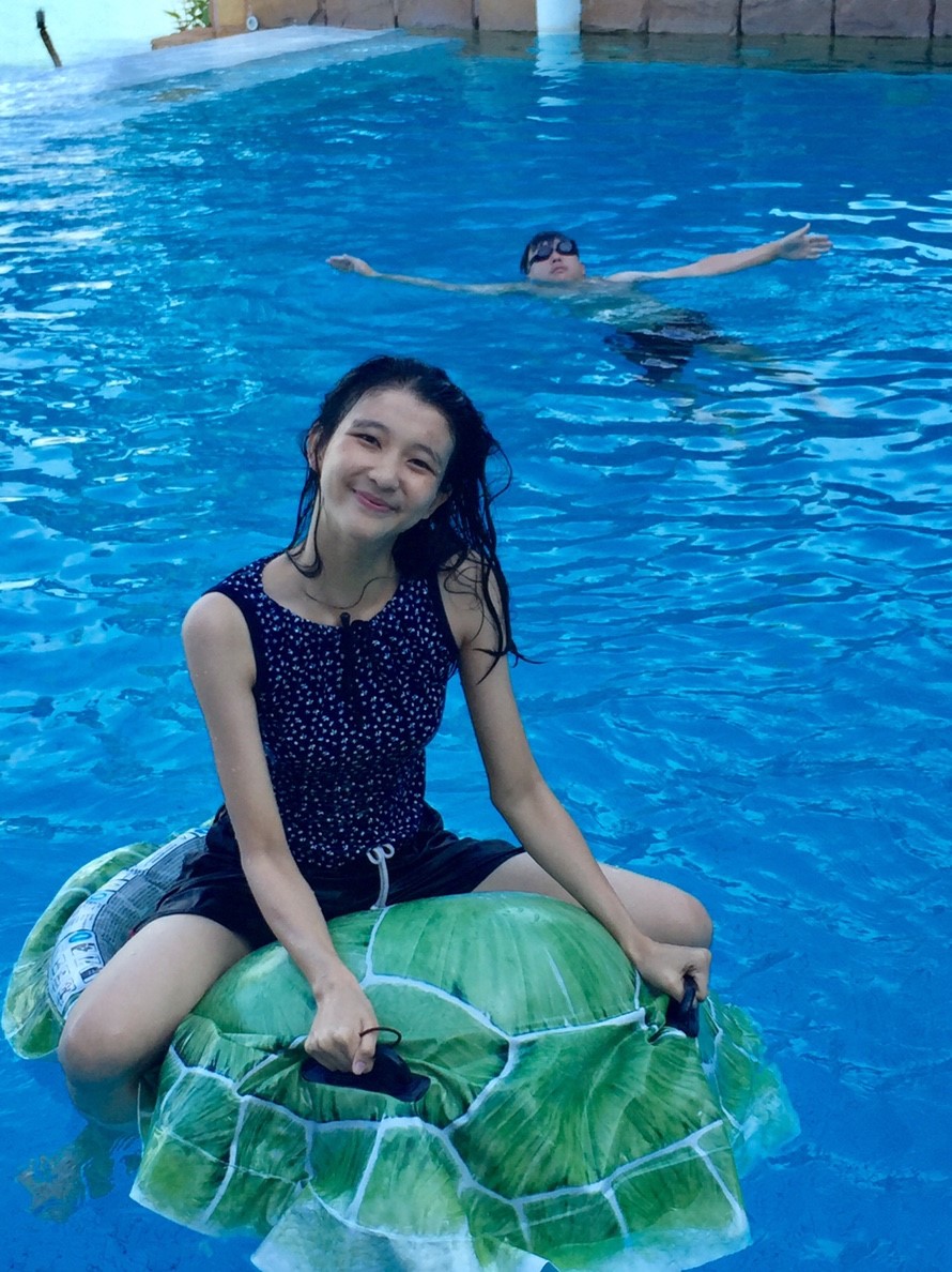 แล้วหนุ่มสาวของทริปก็ลงไปใช้สระ (ค่อนข้างเล็กค่ะ เพราะส่วนใหญ่คนไปลงทะเลกันค่ะ)