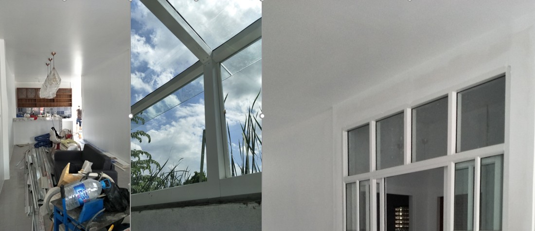 งานกระจกอลูมิเนียมและงานปูกระเบื้องพื้นห้องครัวทาสีผนัง ติดตู้ลอย งานสีรอบสุดท้าย และเริ่มติดดวงโครมเราเน้นเร็วเดินไฟแบบท่อลอย เหลือทาสีจริงรอบสุดท้าย