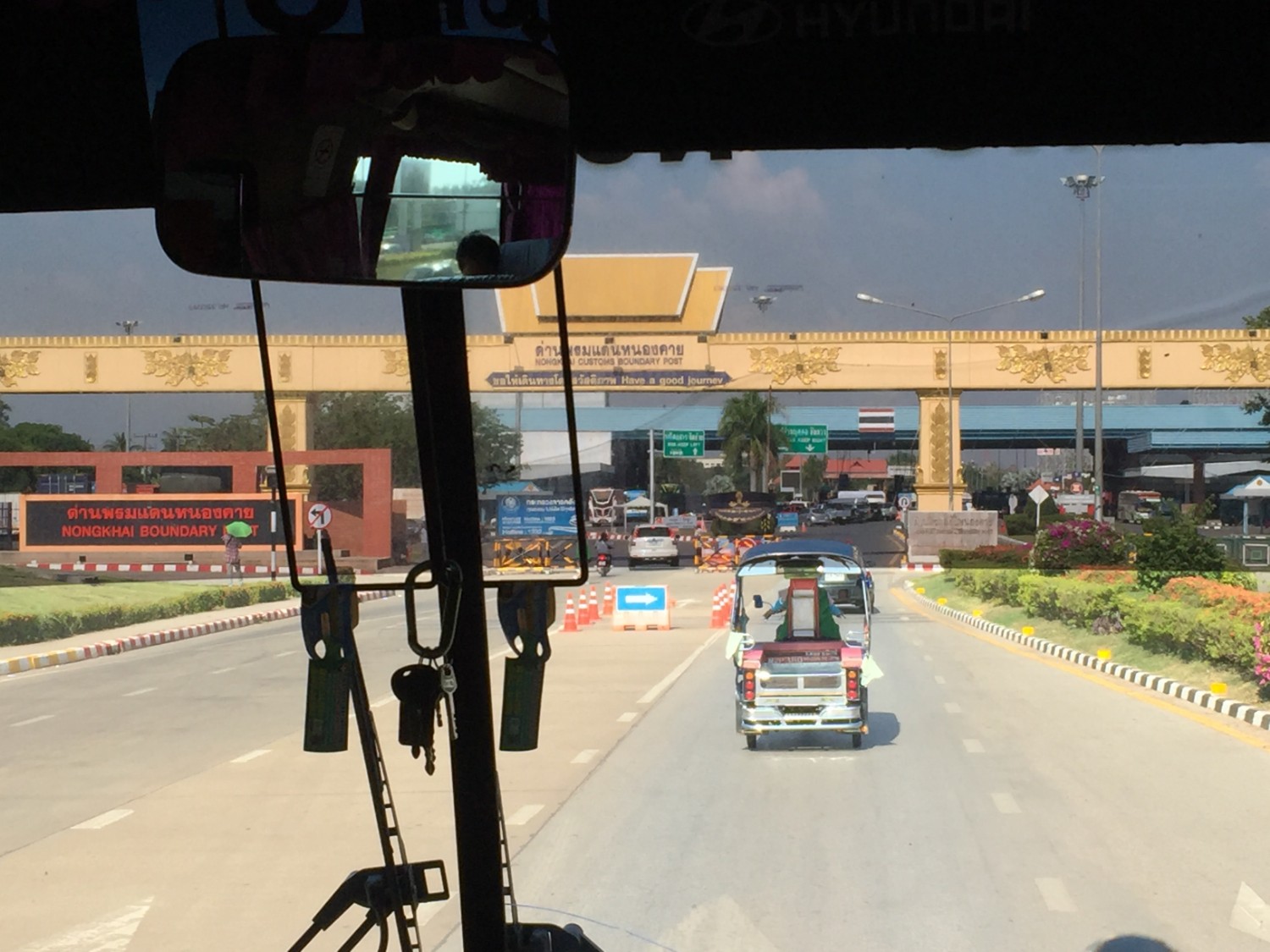ระหว่างนั่งรถไปข้ามชายแดน เราใช้เวลาจาก อุดร ไปถึงด่านหนองคาย ใช้เวลาประมาณ ชั่วโมงครึ่ง พอถึงด่านตรวจคนเข้าเมือง เราก็ลงจากรถไป ด่าน ตม. ไทย คนไทยจะผ่านเครื่อง อัตโนมัติ แล้วทำตามขึ้นตอนที่ระบบแจ้งให้ทำ และหลังจากผ่านมาได้ เราก็ยื่น Passport ให้ เจ้าหน้าที่ ตม. สแต้มบนหน้าเล่ม Passport และเราก็เดินออกมารอขึ้นรถ หลังจากนั้น รถจะพาเราไปด่าน ตม. ลาวเพื่อยื่นขอผ่านแดนอีกรอบ โดยเราต้องกรอก เอกสารขอผ่านเข้าลาวให้เรียบร้อยตั้งแต่อยู่บนรถ เพราะจะได้ไม่เสียเวลานครับ