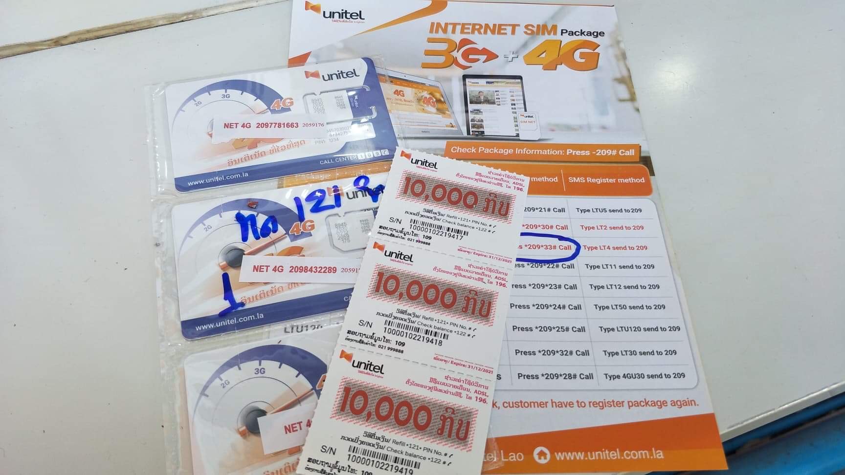 พอแลกเสร็จเราก็ซื้อซิมเพื่อเปลี่ยนไปใช้ที่ลาวและสมัครแพ็คเกจ อินเตอร์เน็ตให้พร้อมก่อนเข้าลาว โดยราคาซิมและบัตรเติมเงิน รวมแล้ว 80 บาท ค่าซิม 40 บาท ค่าบัตรเติมเงินสมัครแพคเกต 40 บาท พอเติมเสร็จก็ กดรหัสสมัครแพ็คเกจ อินเตอร์เน็ต เรียบร้อย แต่ระหว่างที่จะไปแรกเงิน และซื้อซิม เราต้องดูก่อนนะว่า ผู้โดยสารขึ้นรถไปกันหมดหรือยัง ถ้ายังก็จัดไป แต่ถ้าเขาขึ้นเรียบร้อยเราก็ควรจะขึ้นไปอย่า เพิ่งแลกก็ได้ เพราะอีกสักครึ่งทางรถประจำทางจะพาเราไปจอดจุดพักรถ โดยที่นั้นก็มีขายซิมและมีให้แลกเงิน พอทำธุระเสร็จเราก็ขึ้นรถประจำที่ได้เลยครับ ต่อจากนี้จะขับยิงยาวไปวังเวียงเลย