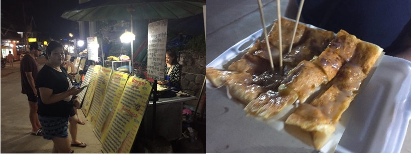 ก่อนเข้าที่พักก็ตะเวนหาของหวานกินเล่นก่อน โดยเราเลือกกินโรตีกัน ซึ่งมีหลายร้านมากๆ ที่เรียงรายเป็นแนวยาว และมีภาษาหลายภาษา ทั้งภาษาอังกฤษ ภาษาเกาหลี