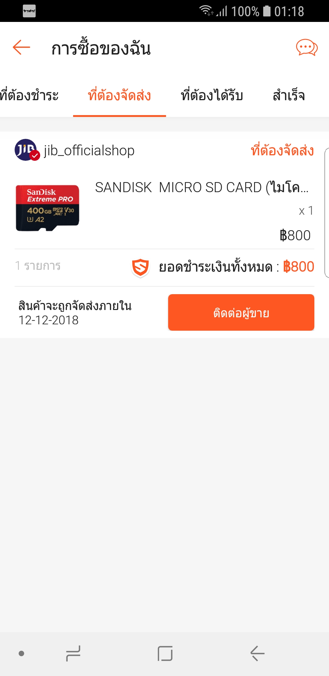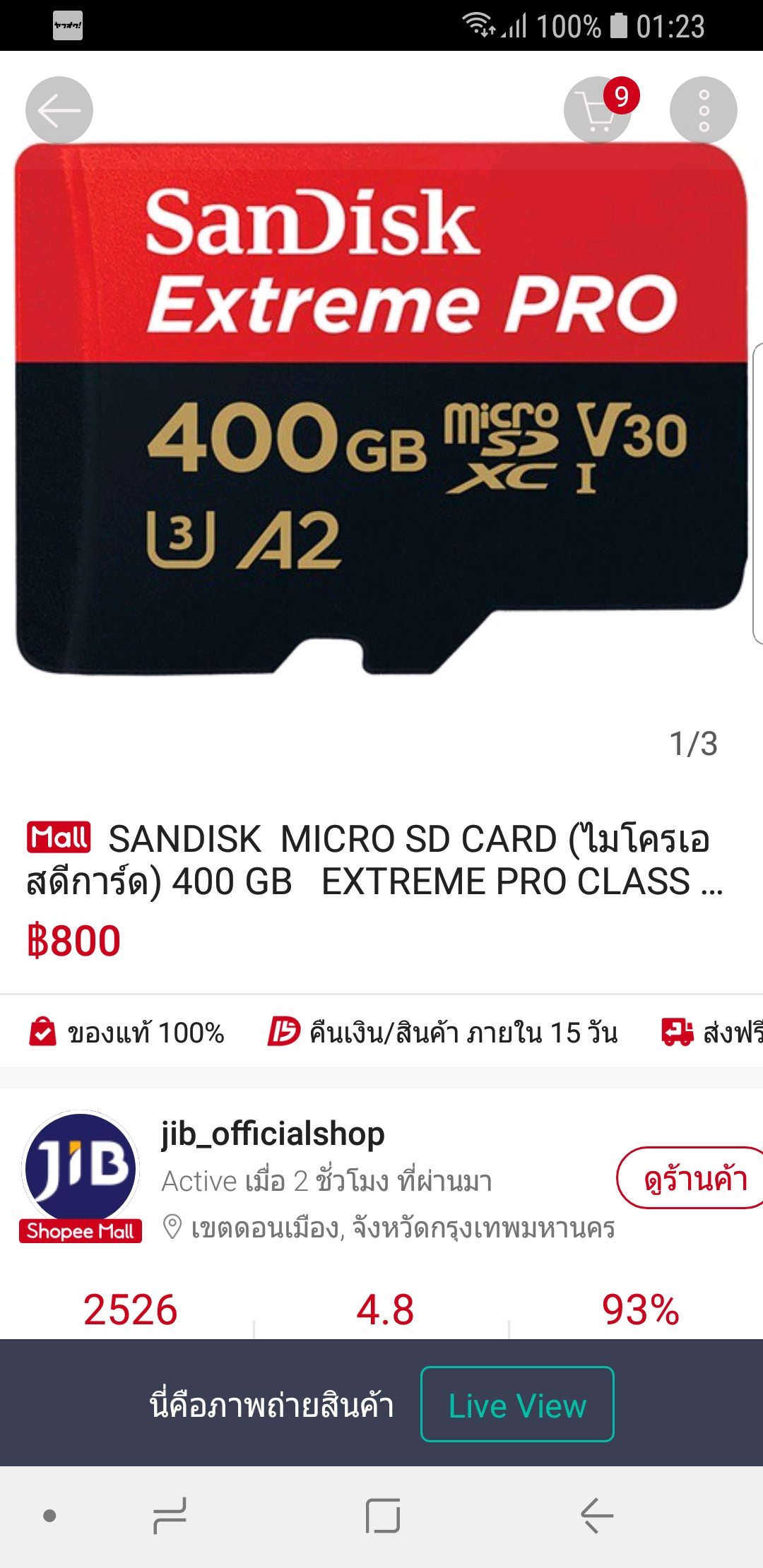 ผมได้มีการสั่งซื้อ sandisk extrem pro 400gb จาก shopee ร้านที่ขายคือ j.i.b