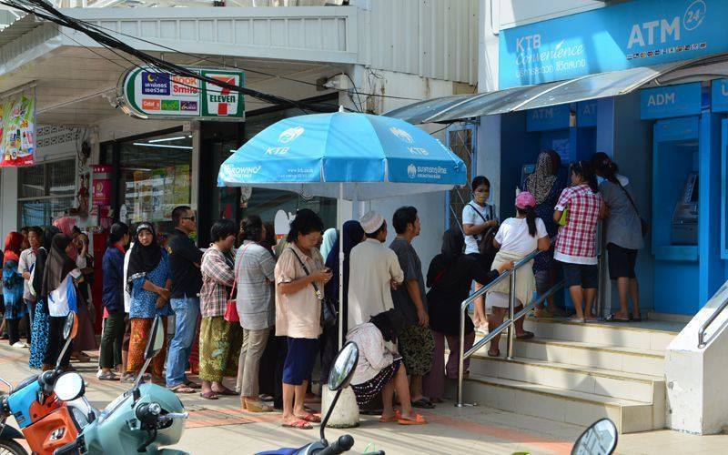 เข้าแถวรอยาวนานมาก โดยบ้างคนนั้นได้นำบัตรเอทีเอ็มมากดเป็นจำนวนมากบ้างรายมีถึง 30-40 ใบ