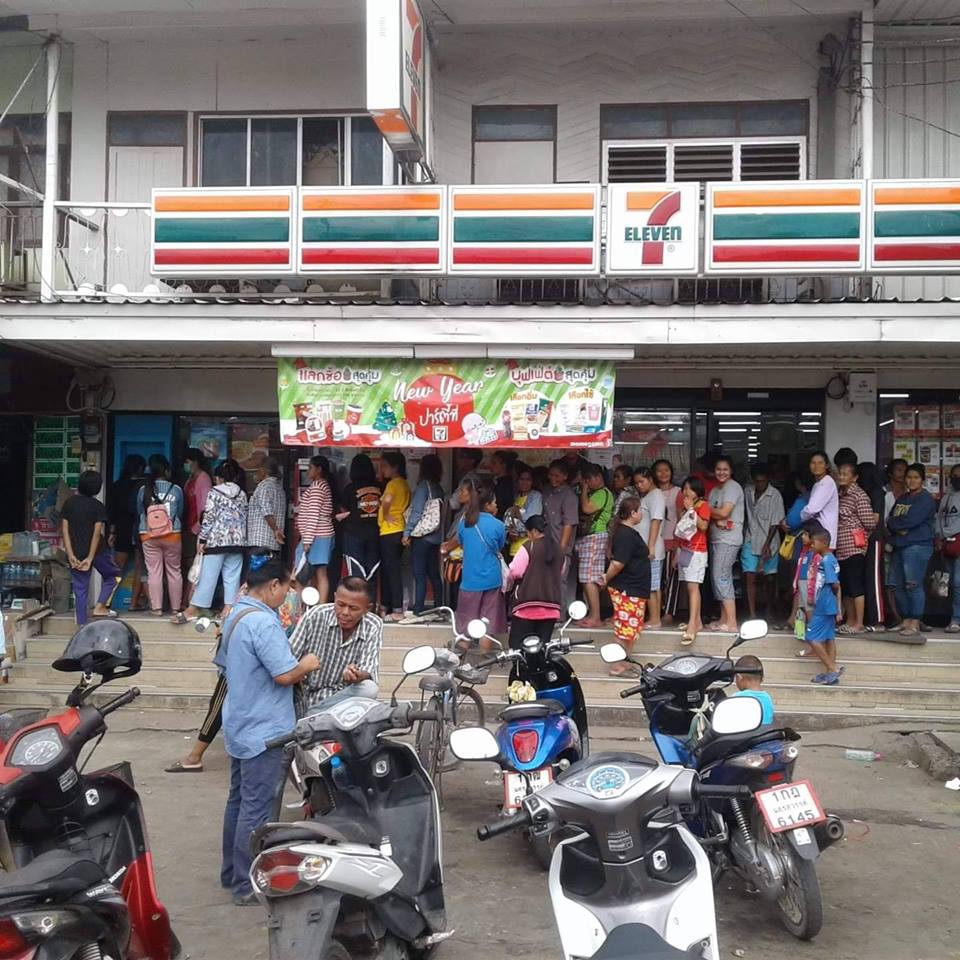 หน้าตู้เอทีเอ็ม เพื่อกดเงินจำนวนคนละ 500 บาท โครงการรัฐบาลของขวัญปีใหม่ของรัฐบาลเป็นจำนวนมาก โดบบ้างคนจับกลุ่มวิพาษวิจารณ์