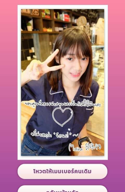 รู้มั้ยว่ารักมะอิที่สุด ตั้งแต่วันที่ได้เจอมะอิวันแรกรู้สึกว่าต้องซื้อพารากินบ่อยมากเพราะปวดหัวกับหนู5555 แต่เอ็นดูน้าาา ตั้งแต่ตันมัยร่ามาทำหน้าที่สนับสนุนมัยร่าตลอด พยายามโปรโมท เปย์น้อง ไปจับมือน้องหลายๆรอบเพื่อเพิ่มยอดบัตรจับมือ จนมาถึงวันนี้และวันข้างหน้าก็ยังคงจะสนับสนุนต่อไปเด้อ!!!