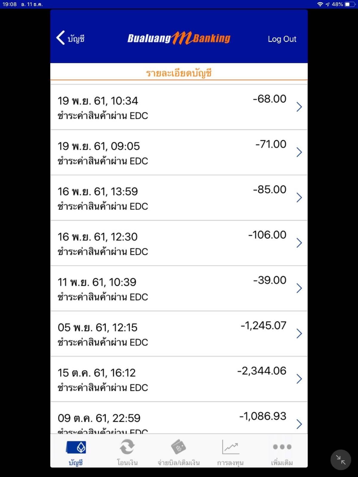 ช่วยติดต่อกลับด้วยครับ Purchase via EDC 20 บาท 500 บาท 500 บาท 400 บาท 100 บาท ต้องโอนออกเอง กลัวหมด โทร Call Center ไม่เคยได้คุยกับพนักงานสักที ไม่ว่าเรื่องอะไร เวลาไหน