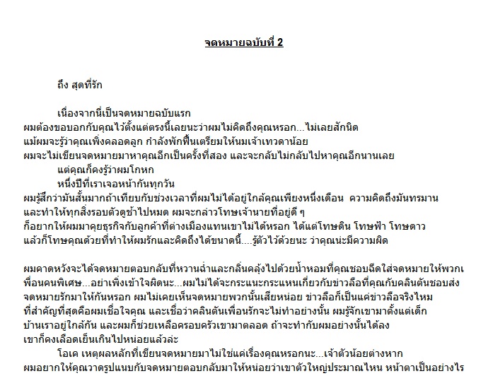 ผู้เขียน ใช้ "จดหมายสองฉบับ" เป็นเครื่องมือในการดำเนินเรื่อง และพออ่านแล้ว จะว่าไม่มีบทสนทนา ก็ไม่ใช่เสียทีเดียว เพราะการเขียนบทสนทนา ปรากฏอยู่ในจดหมาย แต่ไม่มีเครื่องหมายเปิดปิดคำพูด ถ้าเป็นฝรั่งเรียกประโยคแบบนี้ตามหลักไวยากรณ์ว่า INDIRECT SPEECH