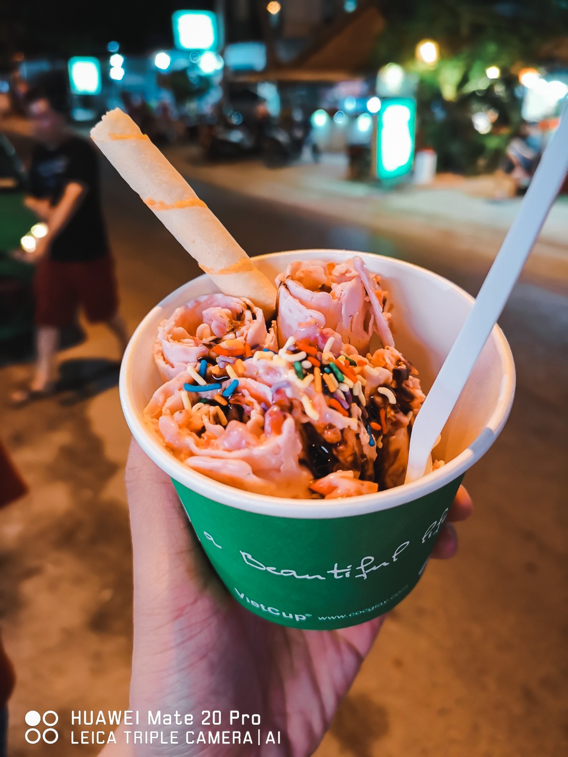 ใช้เวลาประมาณ 4 ชม. ระหว่างทางก็แวะพักตามจุดต่างๆ น้ำที่นี่ขุ่นมาก สีกาแฟสุดๆ และแล้วก็ได้เห็นร้ายขายขนมถุงของเวียดนาม ลองแล้วรสชาติแปลก แต่อร่อยดีนะ