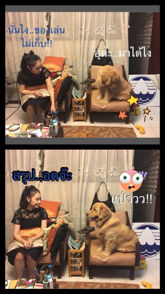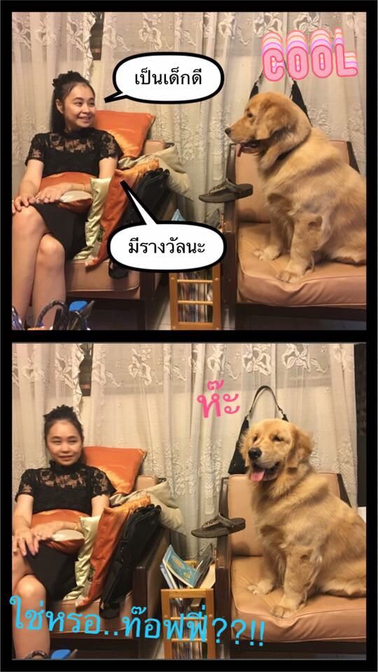 ผมสงสัยว่าลูกหมาที่ผมเลี้ยงคือพันธุ์อะไร ปกติผมเลี้ยงแต่พันธุ์ไทย ตัวนี้ซนมากชอบคาบรองเท้าคาบทุกอย่าง เวลาลงเล่นน้ำในสระจะลอยไปแล้วชอบคาบกิ่งไม้ใบไม้ที่ลอยอยู่ในน้ำ จะเป็นโกลเด้นผสมไทย