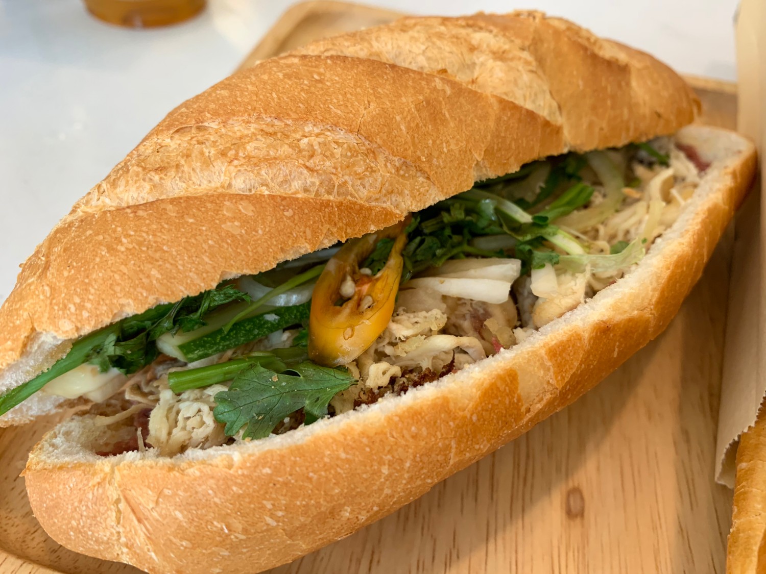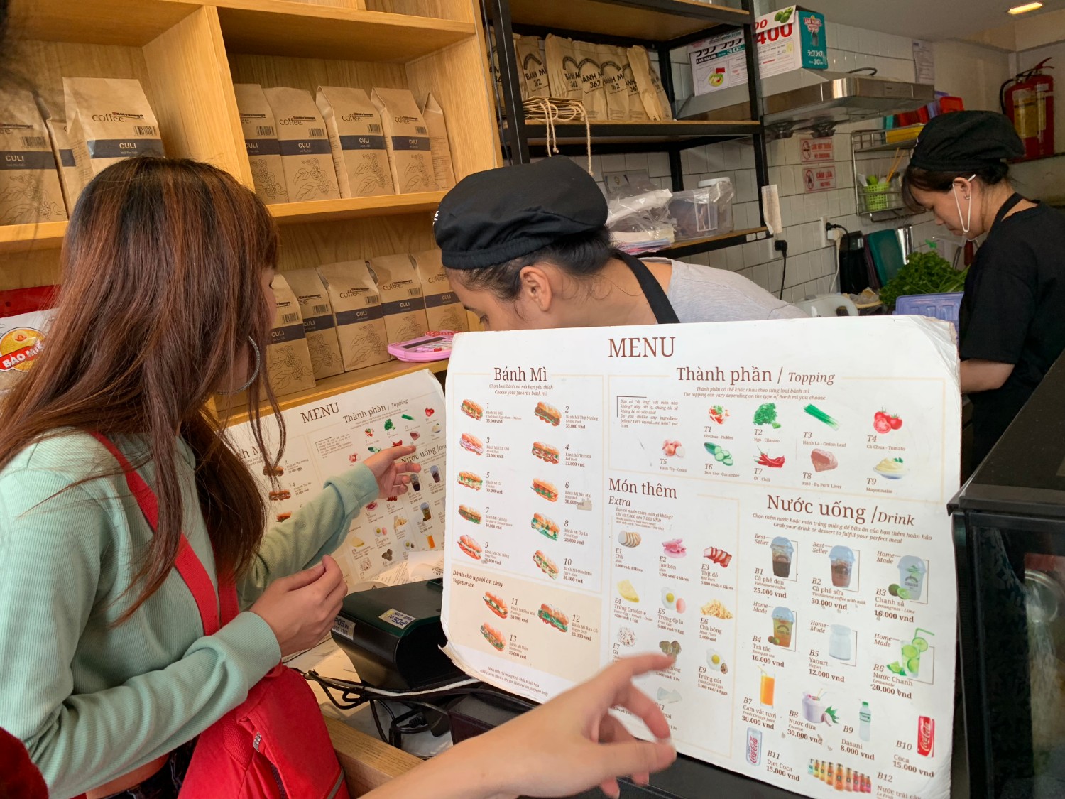 หลังจากฝากกระเป๋า สบายตัวเลย ได้เวลาเดินเที่ยวแต่หิวมาก บวกกับร้อนสุดๆ อุณภูมิ 33 องศา แต่เหมือน 40 ร้อนโคดๆ เลยหาของกินที่ใกล้ๆ คือมองไปเอาร้านนี้แหละ ดูท่าทางจะมีแอร์ เพราะมีกระจกปิดมิดชิด เลยมุ่งหน้าเลย ตึกขาวๆ ตรงข้ามที่ฝากกระเป๋า ร้าน Banh Mi เข้าไปถึงก้อสั่งอาหารเลย รอรับ แร้นขึ้นไปนั่งกินข้างบน ปรากฎแอร์ไม่เย็นเจ้าค่ะ ร้อนตับแตก แต่ขนมปังที่ซื้อมาดีงามมาก กรอบนอก นุ่มในแต่ไส้ไม่ค่อยหร่อยอ่ะ