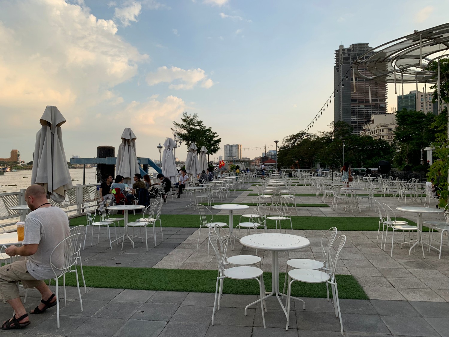 จากร้านอาหารเดินต่อจ้า คราวนี้ชิวๆ แระ อิ่มท้องแดดไม่ร้อน เดินไป BACH DANG STATION ในใจคิดว่ามันเหมือนอารมณ์ท่ามหาราชบ้านเรางี้ แต่แบบของกินไม่ได้เยอะเท่า ท่านั่งจิบเบียร์ชิวๆ เย็นๆ ก็น่าจะโอเคอยู่ รูปก็ประมาณนี้จ้า
