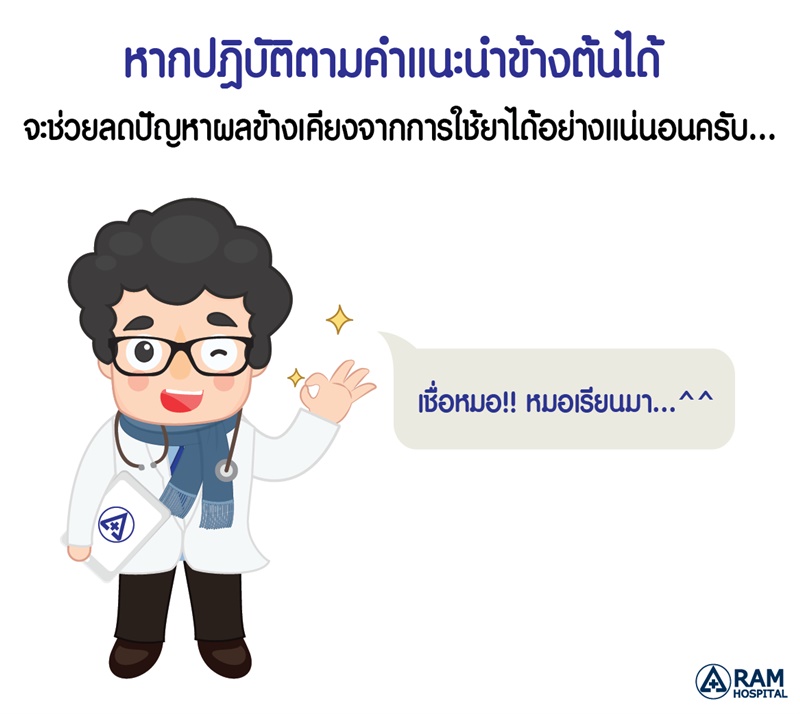 เมื่อพบแพทย์ควรมีรายละเอียดของชื่อยาที่รับประทาน ชื่อโรค และประวัติการแพ้ยาติดตัวไปด้วย