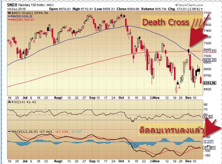 กราฟ นาสแด๊ก มันเกิด Death Cross มันเกิด MA50 ตัดลง MA 200 ไปก่อนหน้านี้แล้ว