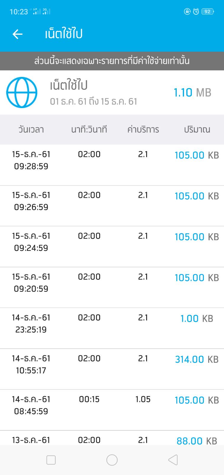 เดือนเเรกในแอปมีค่าอินเทอร์เน๊ท 20กว่านาที นาทีละ 1.05บาท เออไม่เป็นไรอาจจะค้าง
