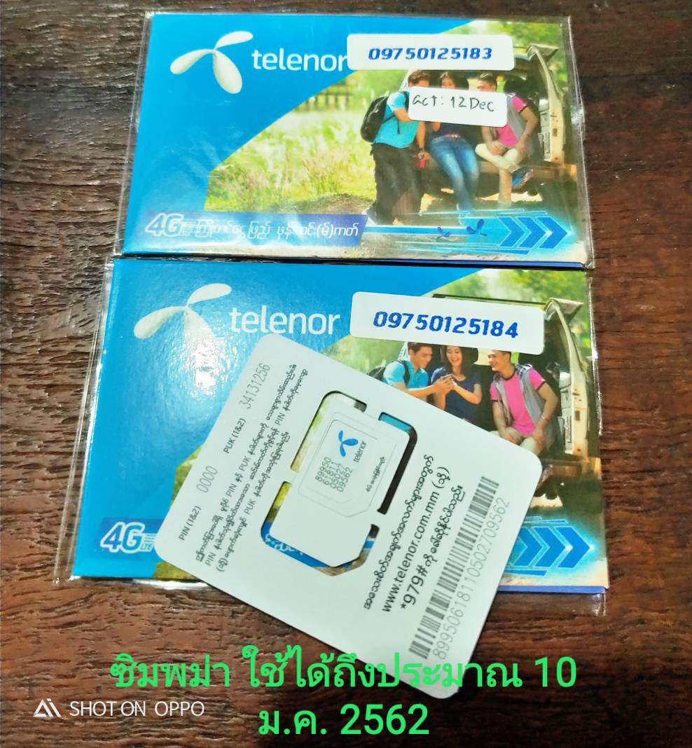 แจกซิมพม่า 2 ใบ ใช้ได้ถึง 10 ม.ค. 2562