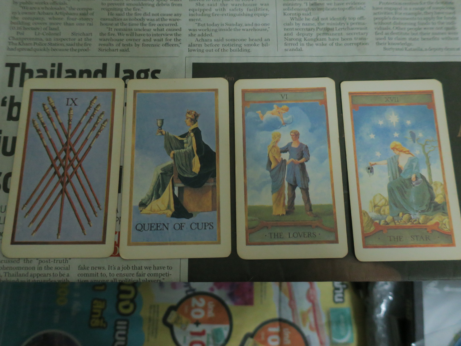 รบกวนทุกท่านทั้งหมอดู หรือท่านที่ฝึกอ่านไพ่ ช่วยอ่านไพ่ 4 ใบให้ด้วยครับ