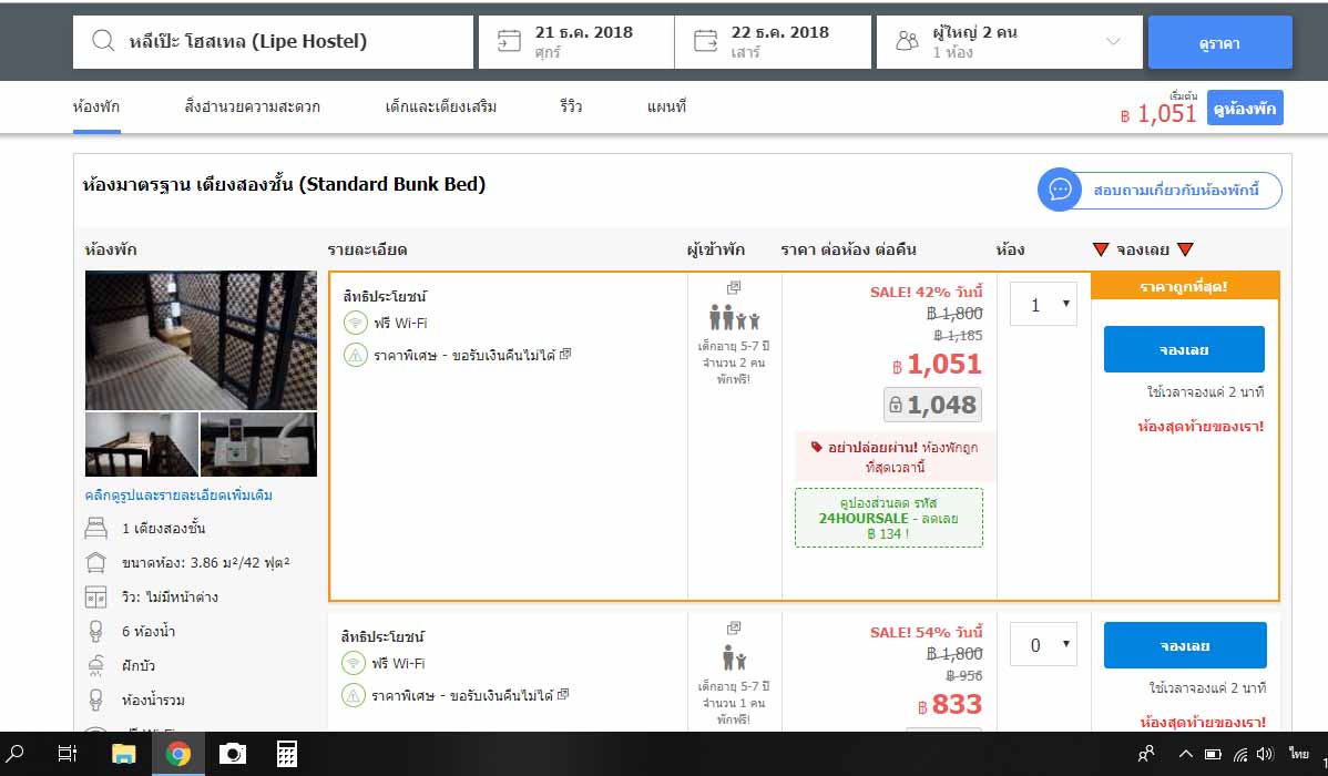 ที่หลีเป๊ะโฮสเทลเลยเหลือห้องว่างอยู่หนึ่งห้อง เป็นห้องไม่มีหน้าต่าง ราคาตอนนี้อยู่ที่ 1000++ ค่ะ