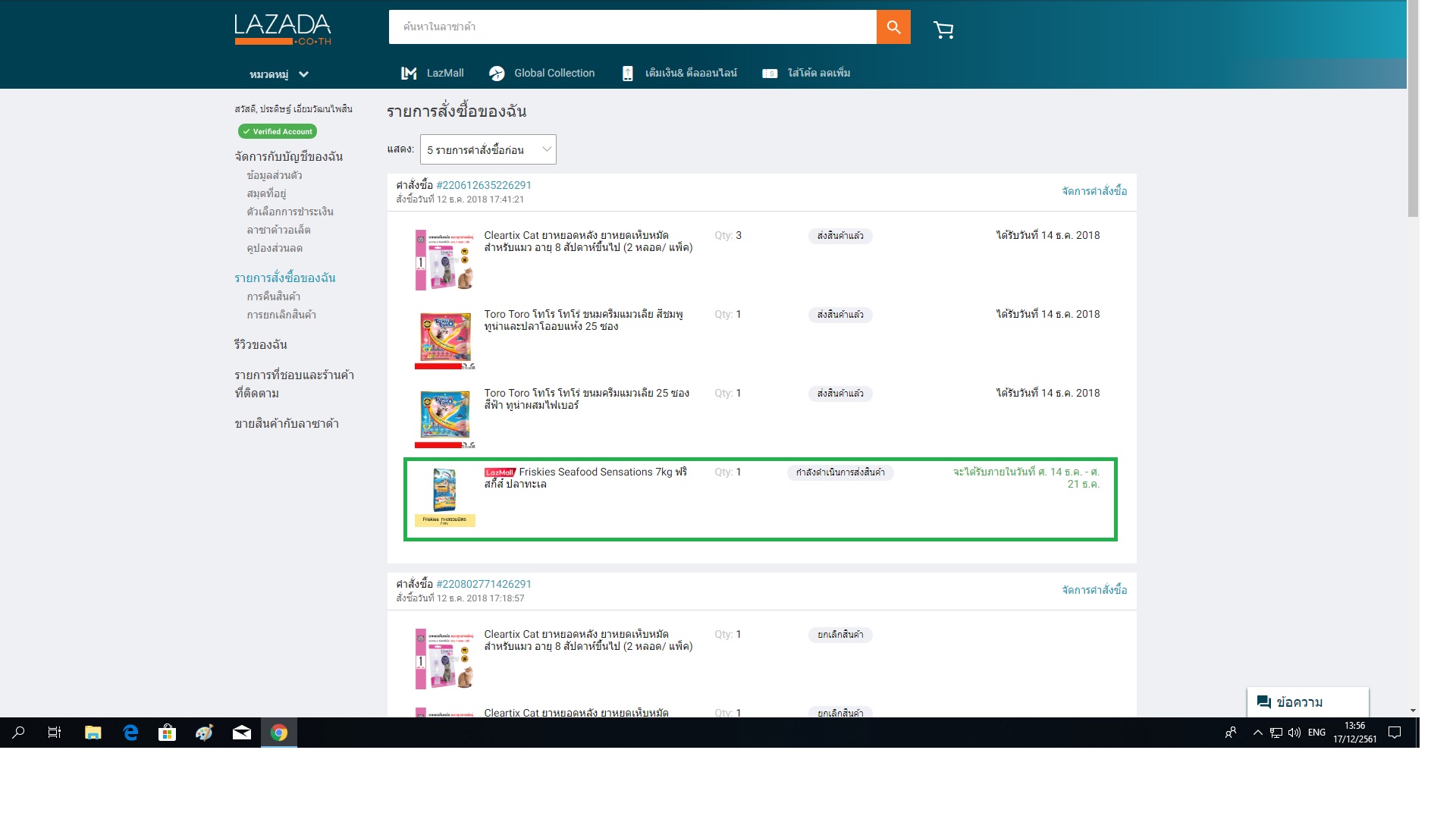 3 รายการ 2 รายการมาส่งแล้ว (มาส่งวันที่14/12/2018) อีกรายการวันนี้ยังไม่มาส่งเลยครับ จะครบ 7 วัน พรุ่งนี้แล้วครับ