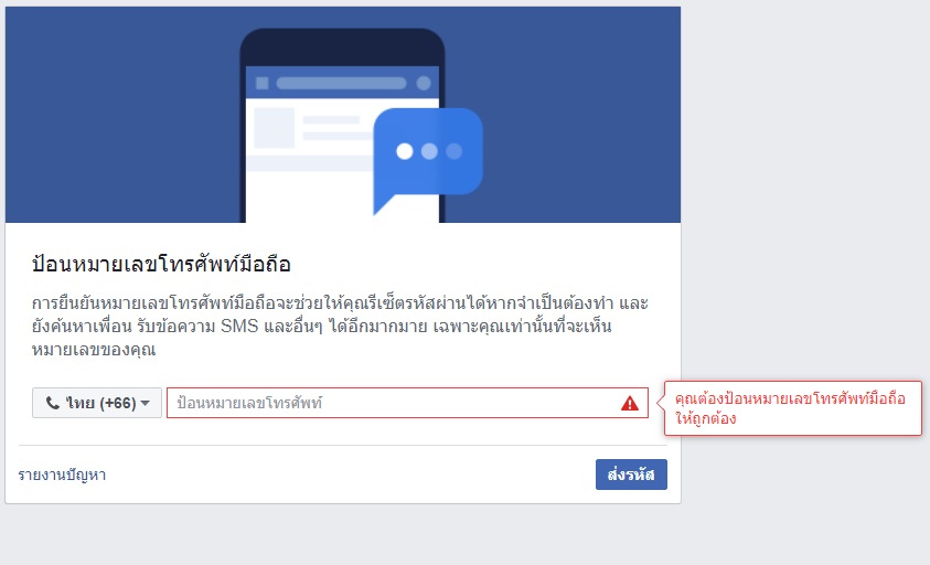 ผมก็ลองใส่เบอร์มือถือผมไป มันก็บอกป้อนให้ถูกต้องอีก ผมจะเข้าเฟสผมได้ไงครับ ติดอยู่หน้าถามเบอร์โทรนี้ครับ