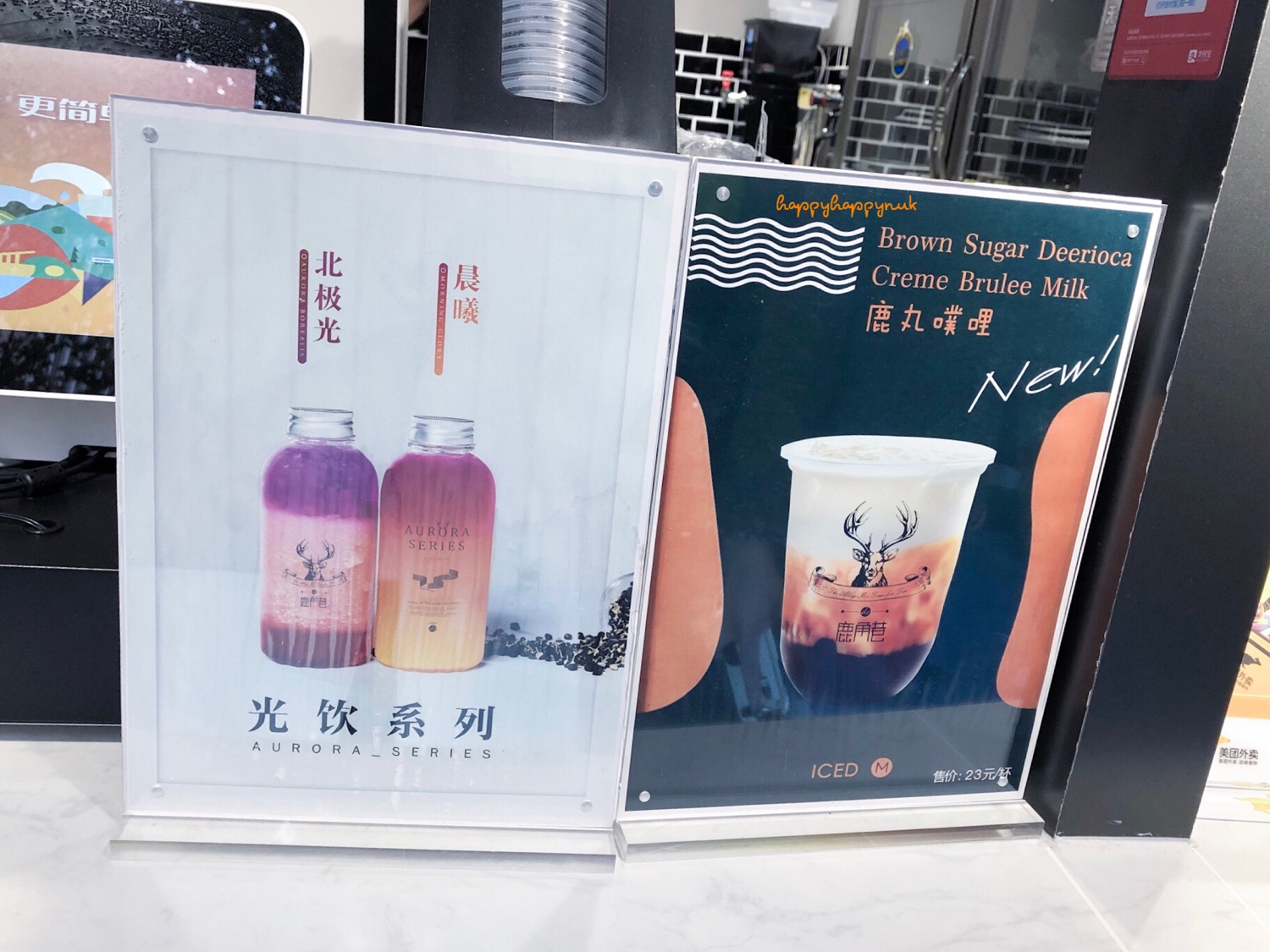 สั่งเมนูตามในรูปขวามือไป ไม่ได้มองว่ามีคำว่า creme brulee อยู่ จนได้มาแล้วดูดเข้าปาก เอ๊ะ ก้อน ๆ ครีม ๆ อะไร ถึงได้มองป้ายที่ตัวเองชี้สั่งไปอีกที สรุปว่าไข่มุกนุ่มกว่าที่ไทย แต่ครีมอันนี้เลี่ยนไปนิด สั่งแบบธรรมดาน่าจะดีกว่า ราคา23หยวน ราคาเครื่องดื่มที่นี่เริ่มต้นประมาณ 20หยวนขึ้นไป