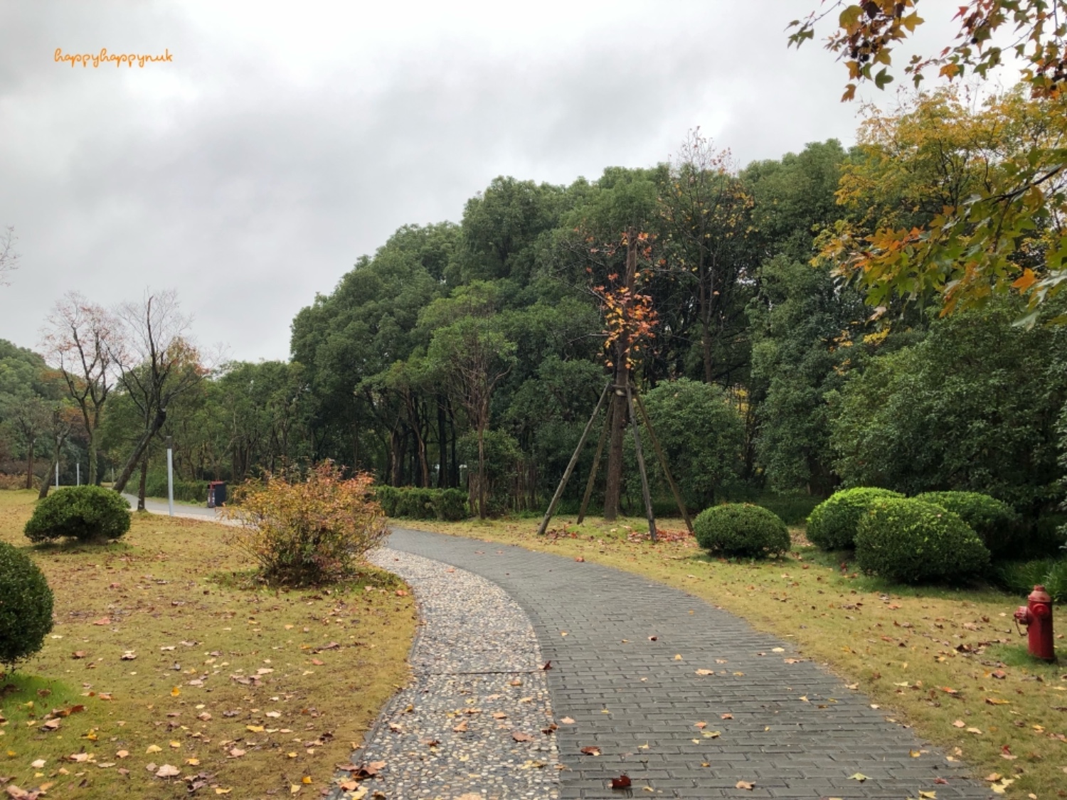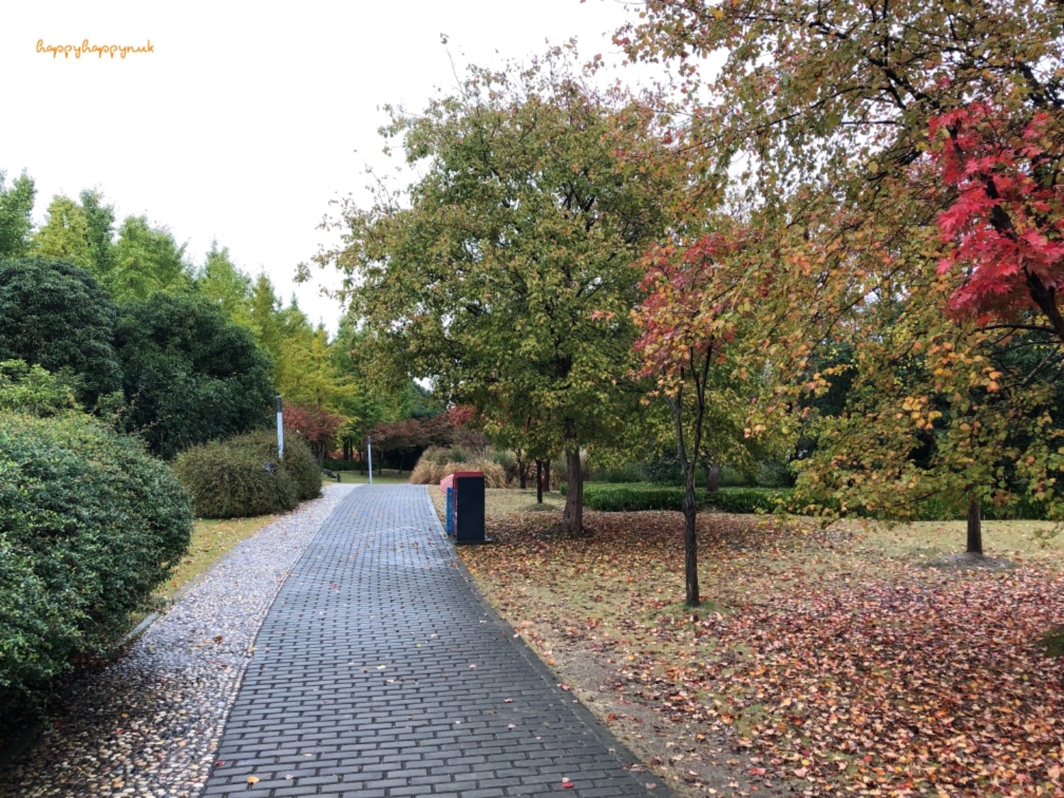 เนื่องจากไปช่วงสาย ๆ ในวันฝนตก คนจะค่อนข้างน้อย ฤดูใบไม้ร่วง ใบไม้บางส่วนเปลี่ยนสี แต่อีกส่วนหนึ่งก็ยังเขียวอยู่ ในสวนมีทะเลสาบด้วย ไม่ได้ลองเดินไปอีกฝั่ง ถ้าฝนไม่ตกคงจะเดินเล่นอยู่ได้หลายชม. เพราะเป็นคนชอบเดินเล่นสวนอยู่แล้ว