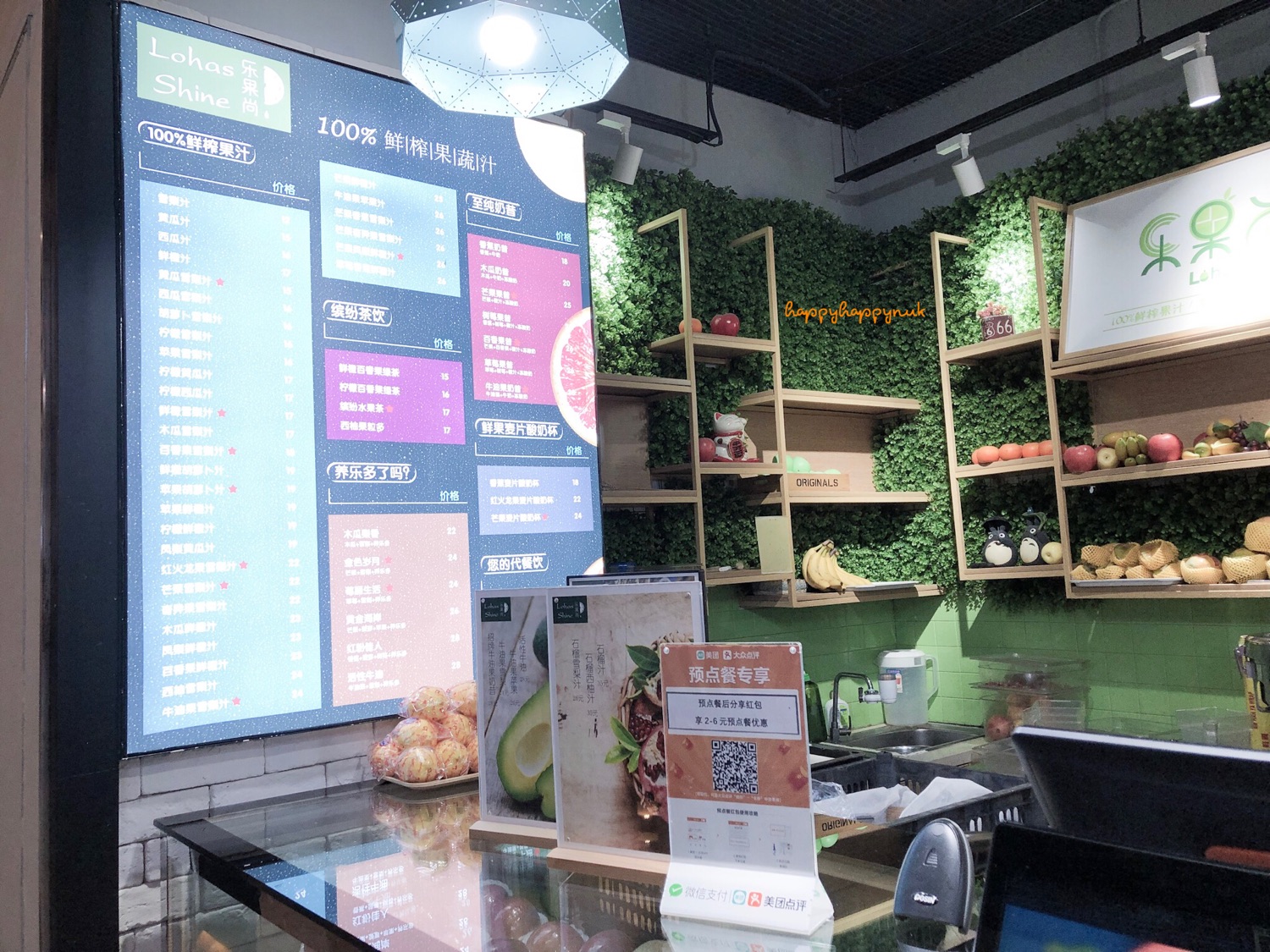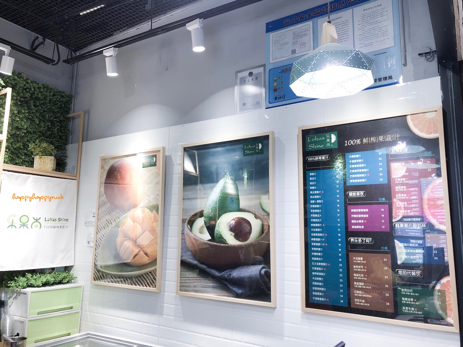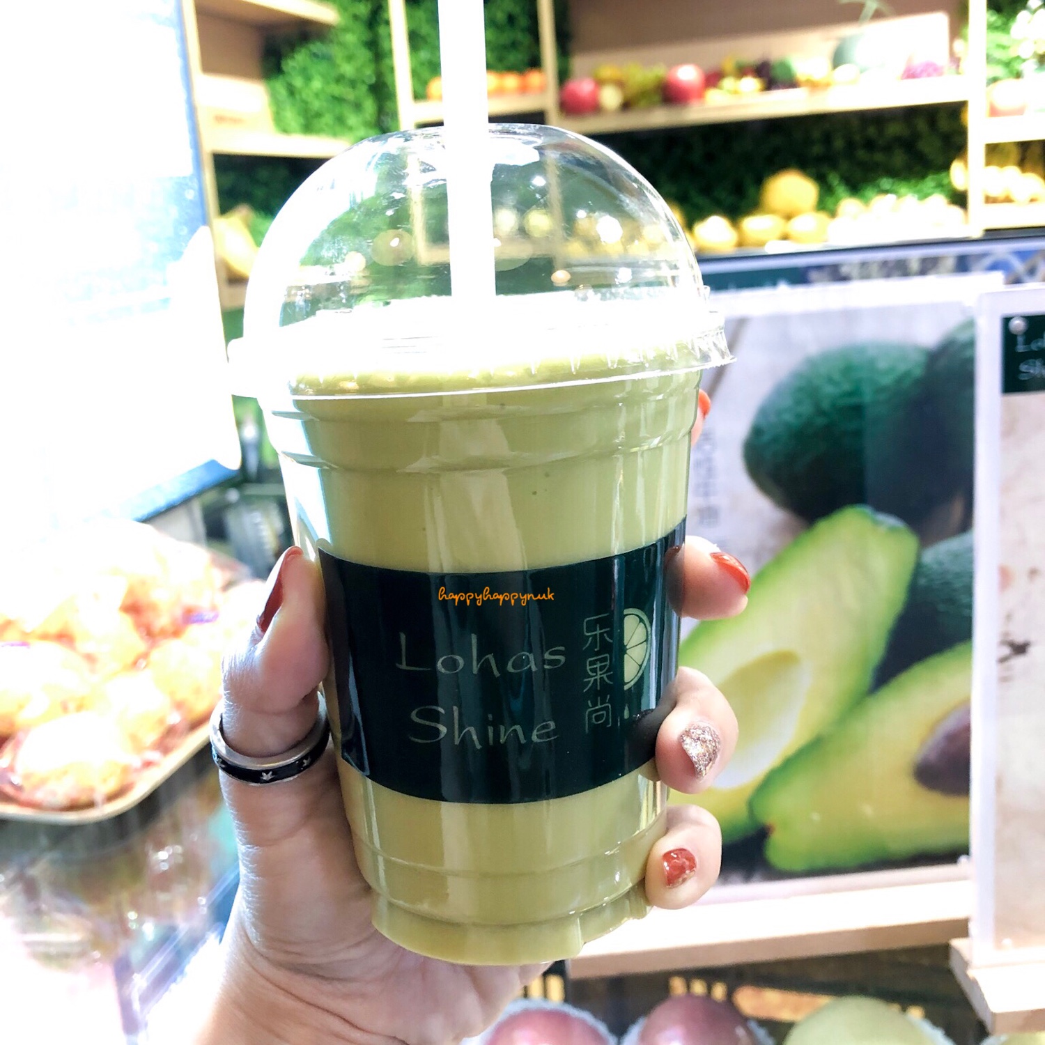 ร้าน lohas shine 乐果尚 อยู่ใต้ดิน สถานี jing'an temple โซนที่มีขายของกิน ถ้าจำไม่ผิดน่าจะลงจากทางออก6 น้ำอโวคาโดกับแอปเปิล คือเป็นน้ำแอปเปิลแยกกากมาปั่นกับอโวคาโด อร่อย สดชื่น ชอบน้ำผลไม้ที่นี่นะ แต่ละร้านเหมือนน่าจะไม่เติมน้ำตาลเพิ่มเลย healthy